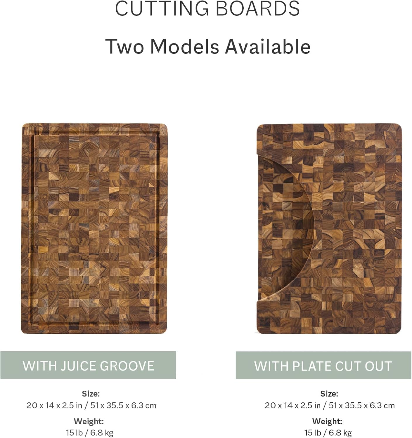 Teakhaus Butcher Block Carving Board - Large Extra Thick Cutting Board with Juice Groove and Grip Handles - Teak End Grain Wood - Knife Friendly - FSC Certified