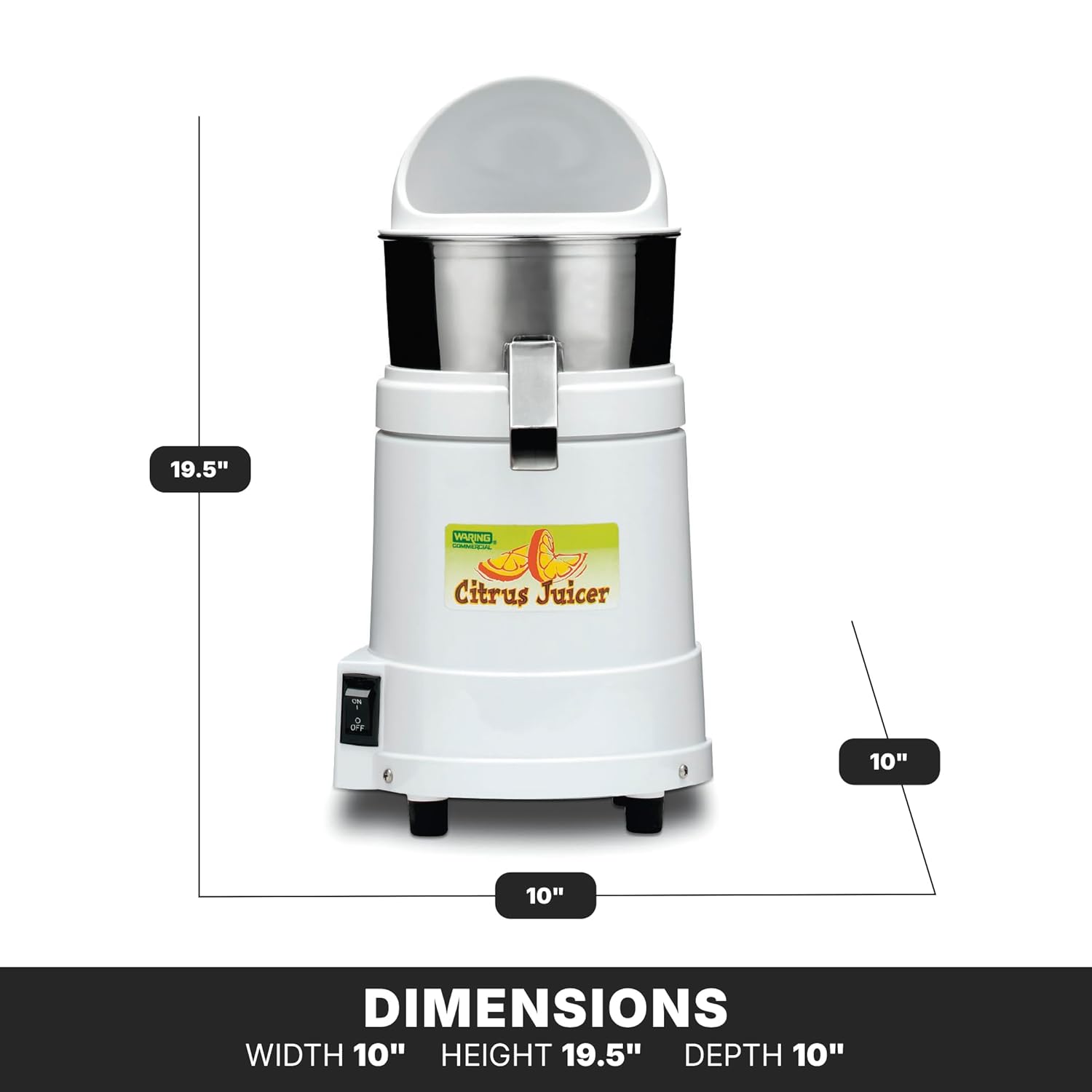 Waring Commercial JC4000 Heavy Duty Citrus Juicer with Dome, 120V, 5-15 Phase Plug, 10 x 10 x 19.5 inches, White