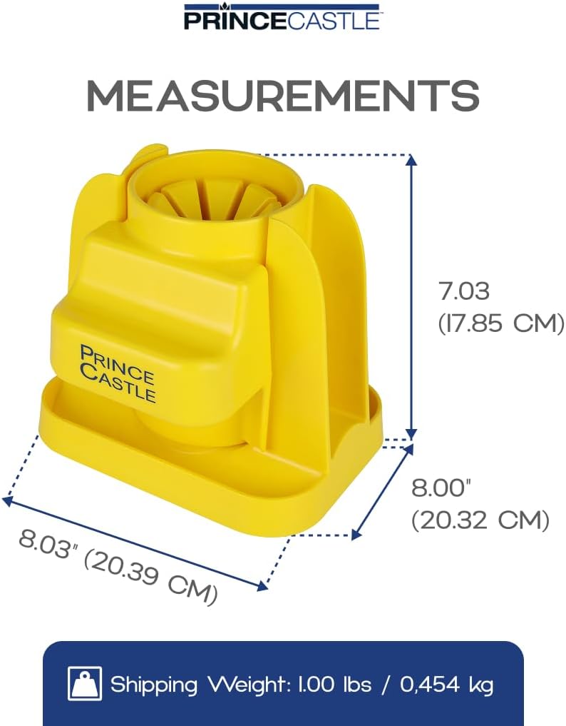 Prince Castle Lime Lemon Cutter - Fruit Slicer Kitchen Gadget and Vegetable Chopper with Container 8-Wedge Slicer, Yellow