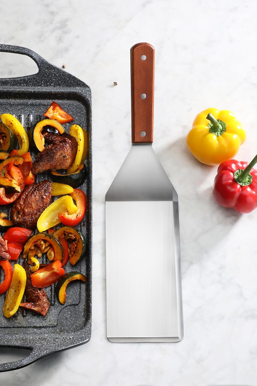 New Star Foodservice 36350 Wood Handle Extra Large Grill Turner/Spatula with Cutting Edge and 4-Inch Wide Blade, 16-Inch
