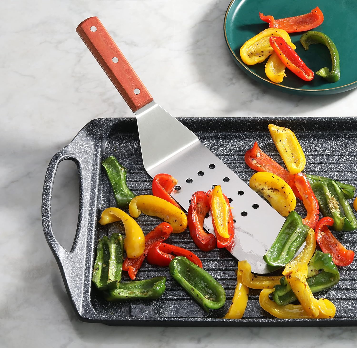 - Exceptionally well crafted solid and perforated turner set|Commercial quality can be used In restaurants food shops catering halls Etc.|Stainless steel blade with wooden handle securely riveted|Easy to clean and hand wash