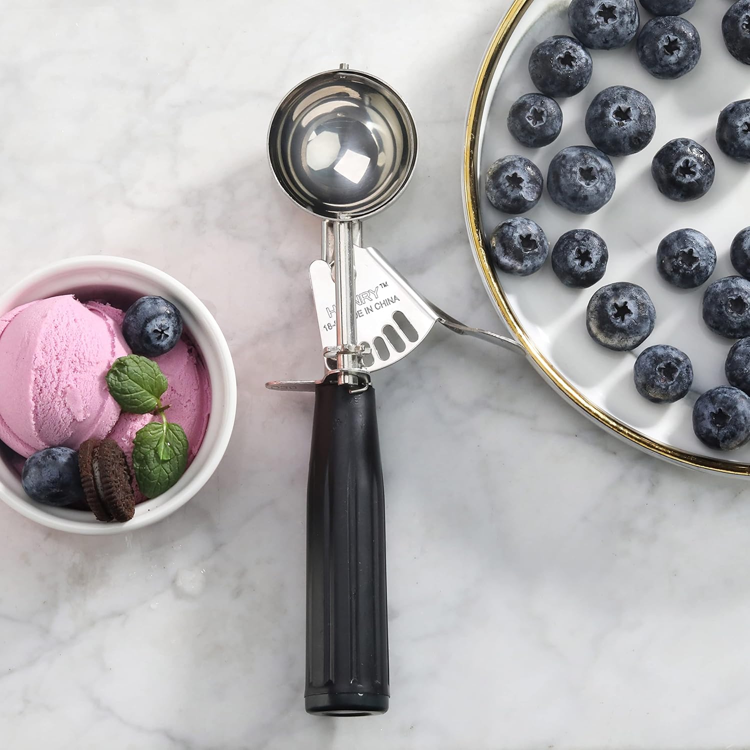New Star Foodservice 34882 Commercial-Grade Thumb Press Food Disher/Ice Cream Scoop, 18/8 Stainless Steel, 1.25 oz, Size 30, Black