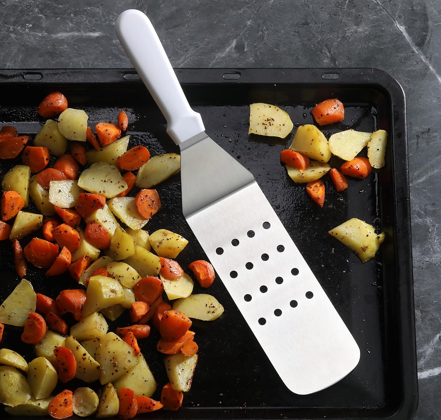 - Exceptionally well crafted solid and perforated turner set|Commercial quality can be used In restaurants food shops catering halls Etc.|Stainless steel blade with wooden handle securely riveted|Easy to clean and hand wash