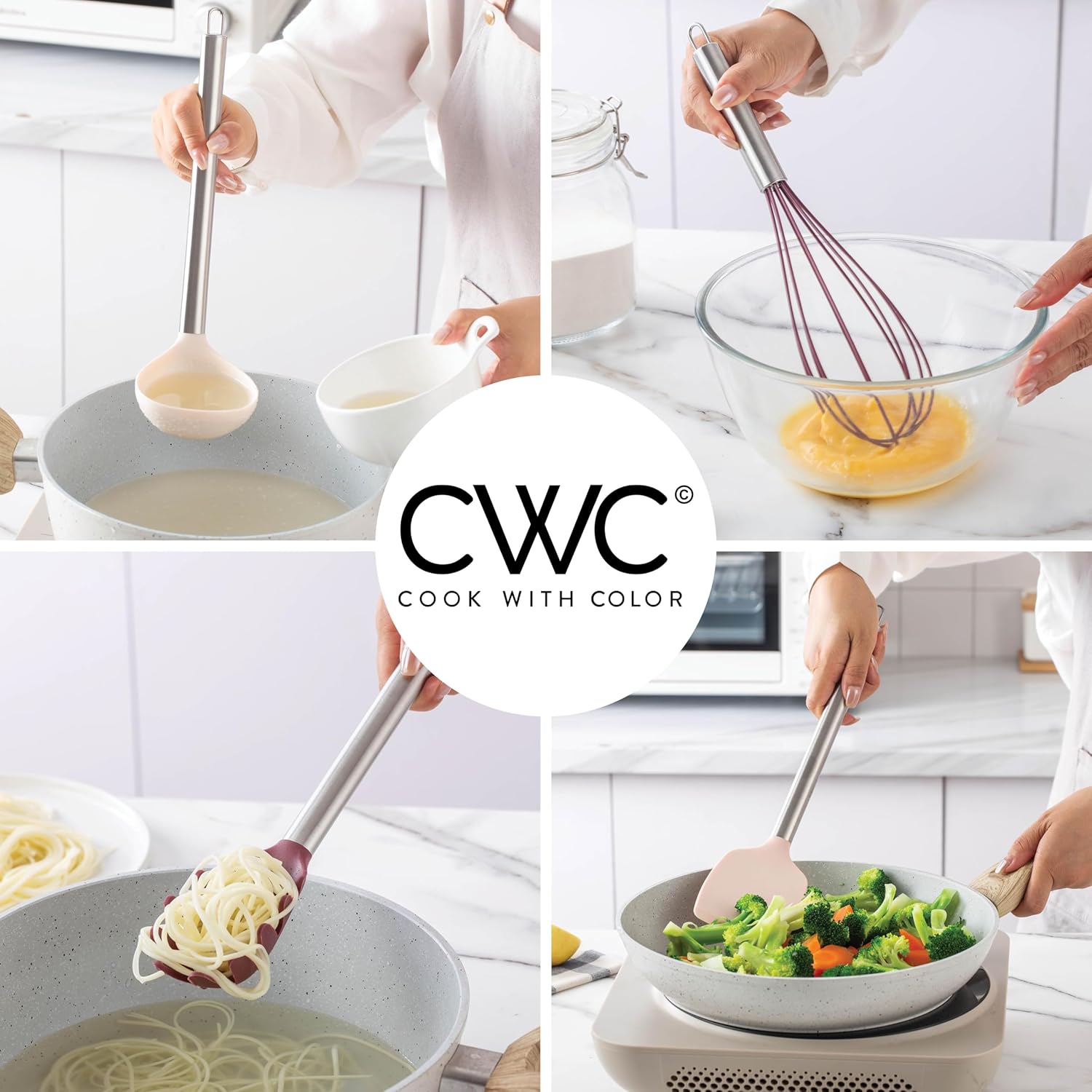 - Cook with Color will give you all the reasons to LOVE your kitchen utensils! Cook, bake and serve with this fashionable cooking tool set that is sturdy and easy to clean! Kitchen beauties that won't disappoint!