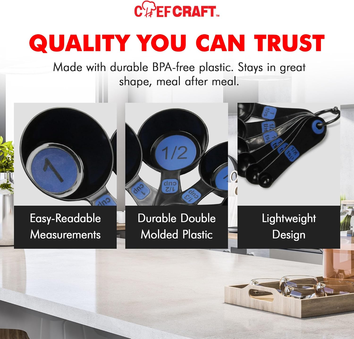 Chef Craft Easy to Read Plastic, Measuring Cup Set, 10 piece set, Blue