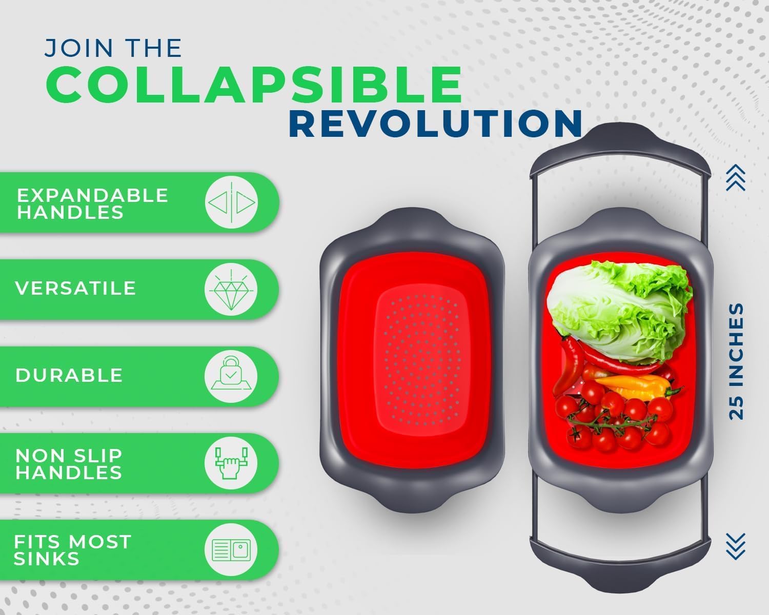 - Adjustable Over the Sink Strainer: Designed with superior drainage in mind, this convenient collapsible colander is perfect for rinsing fruit and vegetables, draining pasta and noodles, or even canned foods. Item Measures: 4.4" Height x 17.25" Length x 10.25" Width.