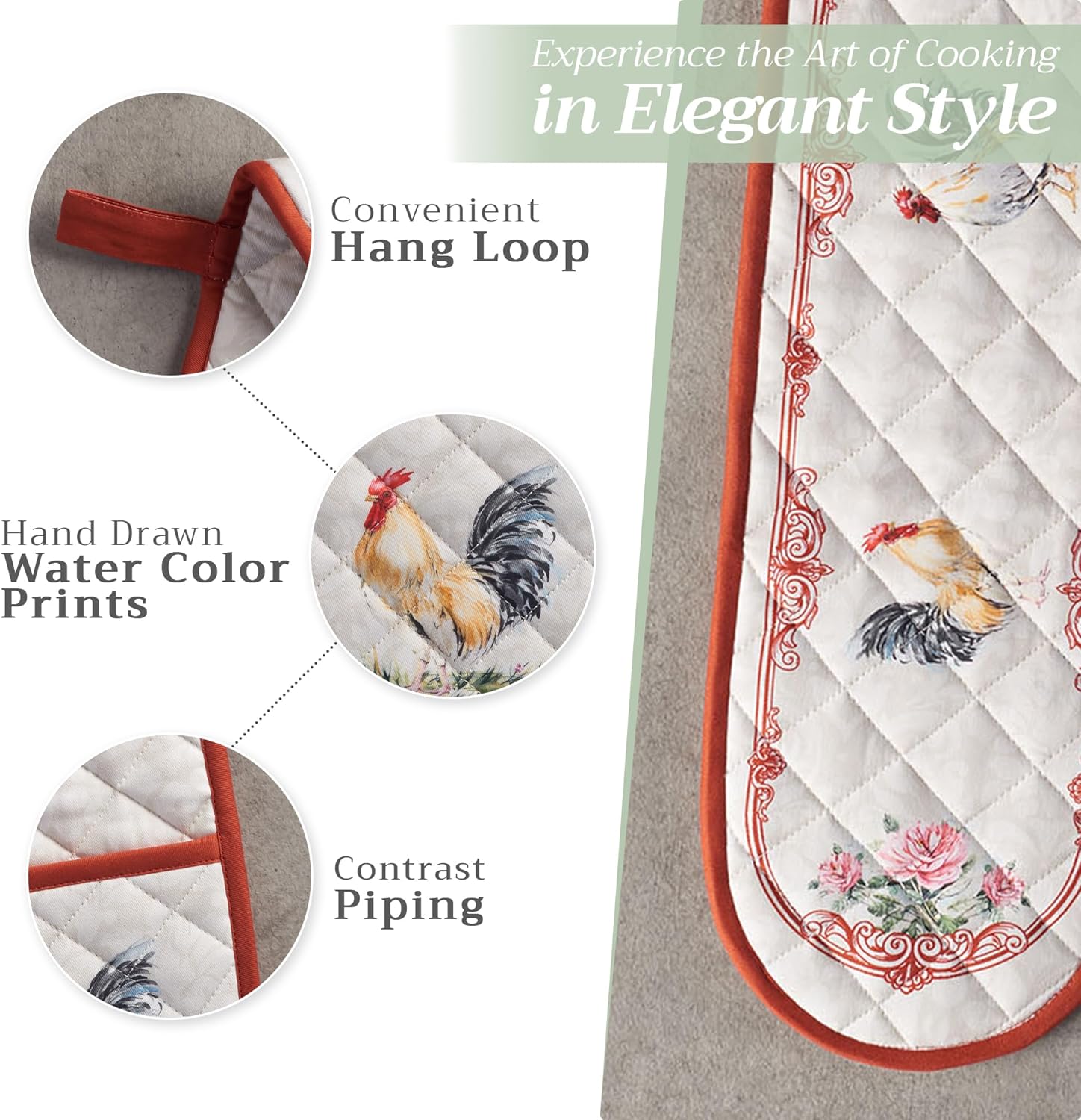 - Package includes: Includes 1 double oven mitt sized 7"x35". Perfect for handling hot cookware safely while adding a touch of European elegance to your kitchen. Designed in Europe and made in India with care
