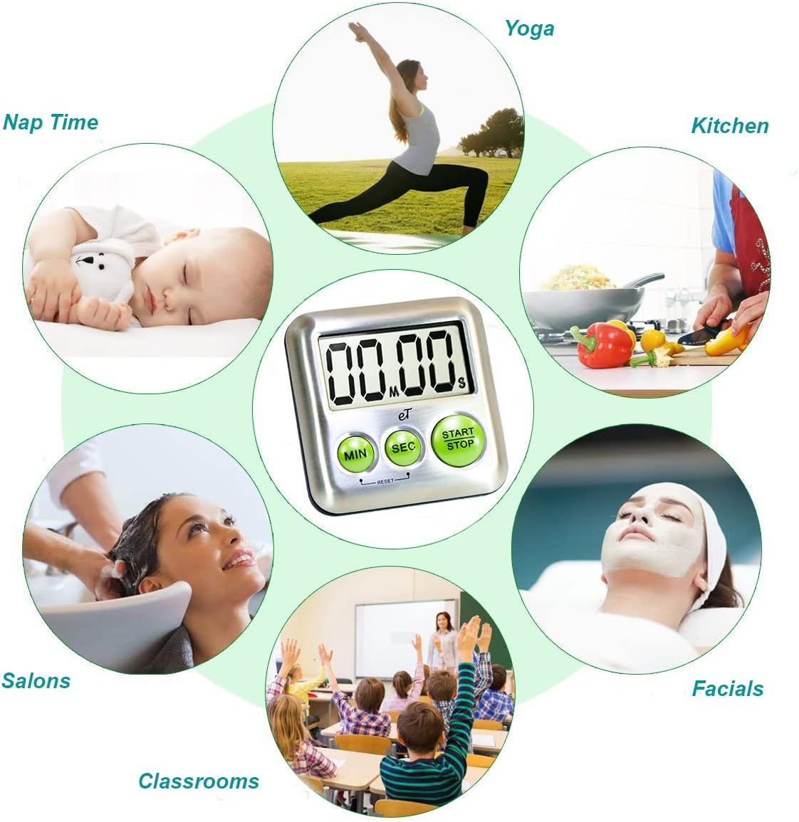 - Convenient Battery Saving Auto Shut-Off Feature: Engages when magnetic timer is idle and not being used for 3 minutes. Press any button to turn these durable chic kitchen timers for cooking on. (1) AAA Battery included. A Favorite: medical, dental, therapy, & productivity timer. Perfect cute egg timer for boiling eggs, 2nd oven timer, cooking timer, kids timer, stopwatch timer, study timer, classroom timer, workout timer, visual timer, or perfect kitchen timer,