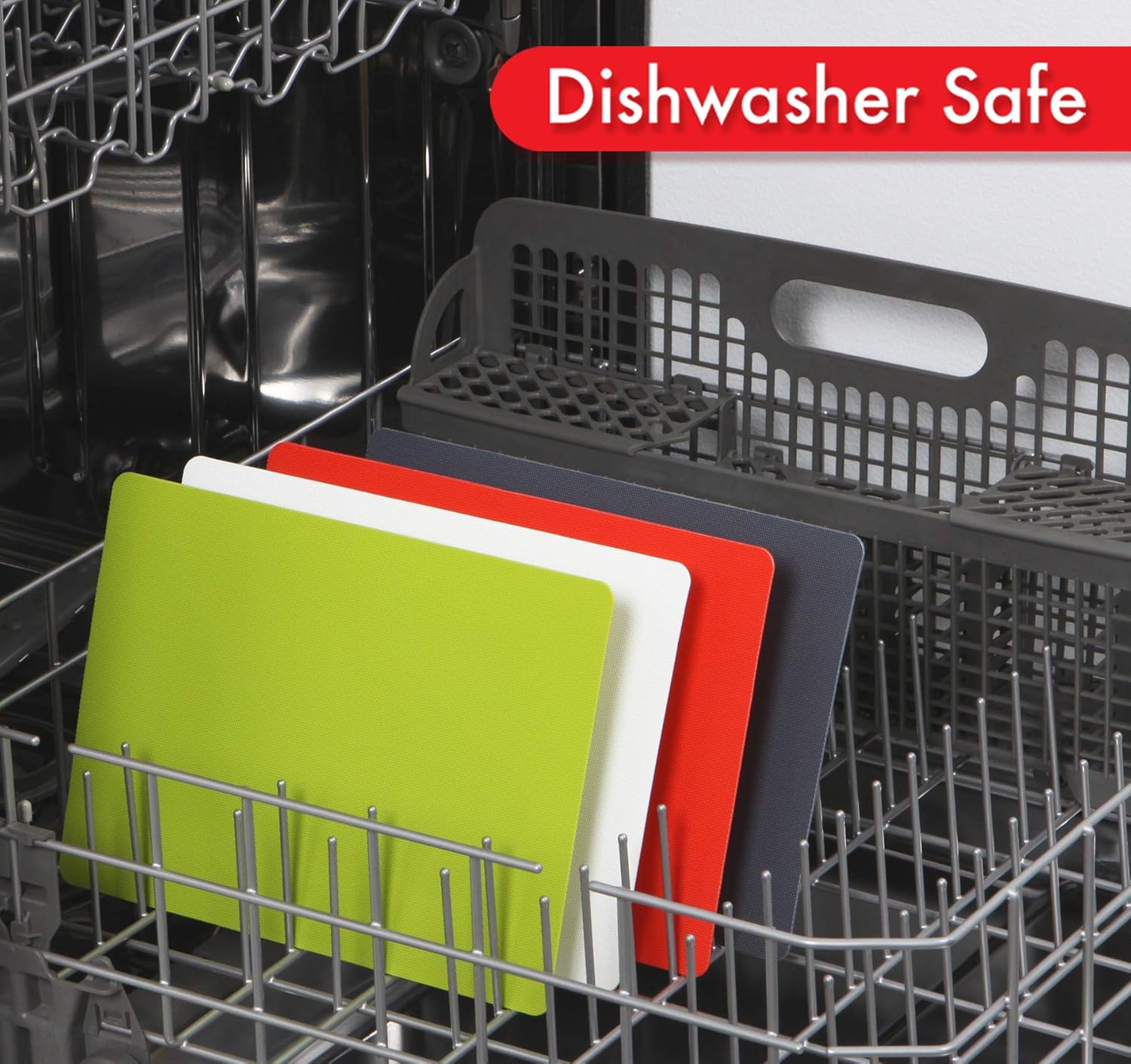 Dexas Heavy Duty Grippmat Flexible Cutting Board Set of Four, 8 by 11 inches, Gray, Red, White and Green