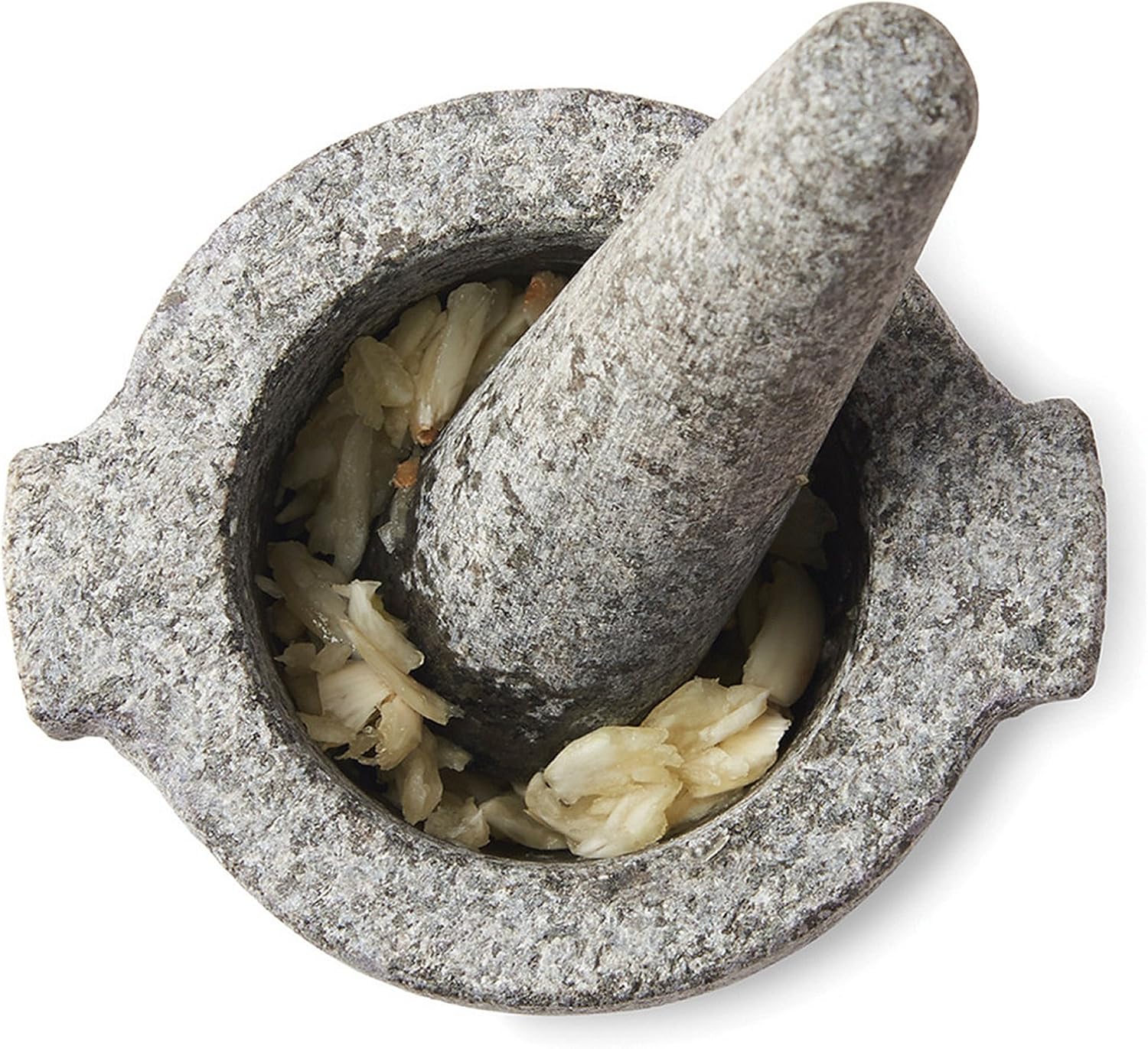 - GRANITE CONSTRUCTION: This stone mortar and pestle is hand crafted from beautiful granite that is not only effective for grinding but also adds to the look of your kitchen.