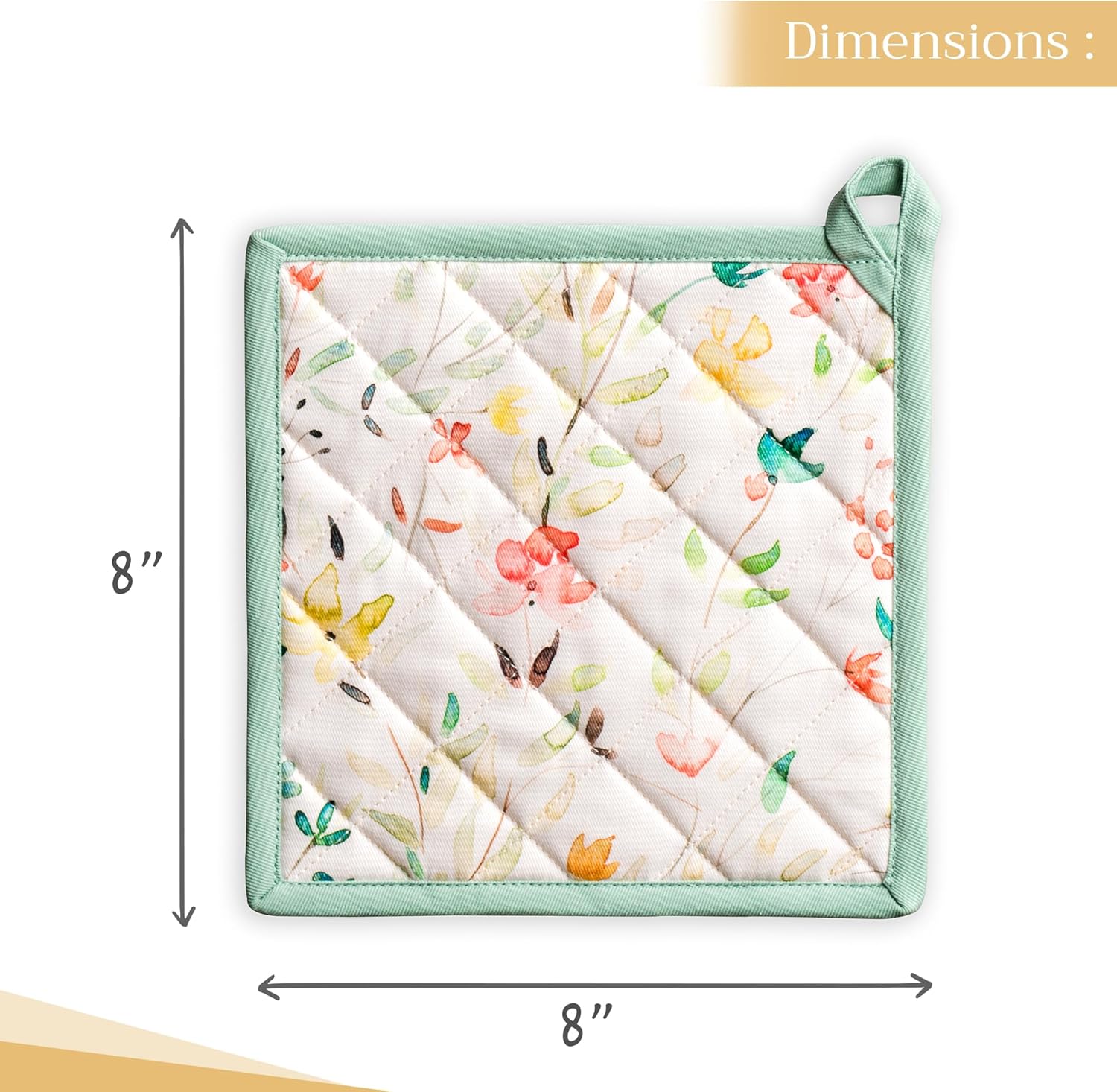 Maison d' Hermine Pot Holders Set 100% Cotton Heat Resistant Potholders 8" x 8" Hot Pads with Loop BBQ, Cooking, Baking, Grilling, Kitchen, Handling Hot Pans Spring/Summer (Pack of 2, Colmar)