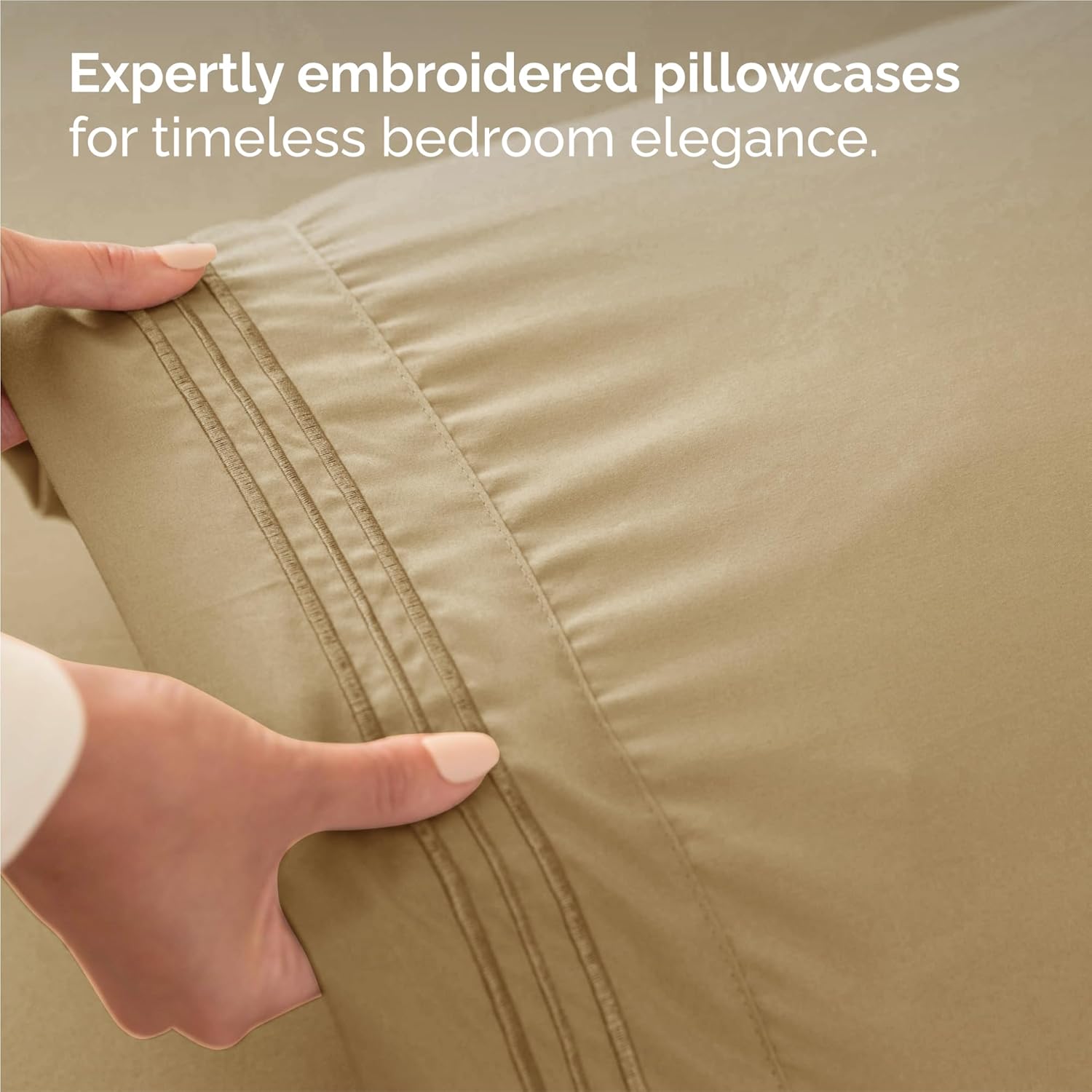 King Size 4 Piece Sheet Set - Comfy Breathable & Cooling Bed Sheets Set - Hotel Luxury Bedding for Women, Men, Kids, Teens, Boys & Girls - Deep Pockets, Ultra-Soft and Wrinkle Free - Oeko-Tex - Beige