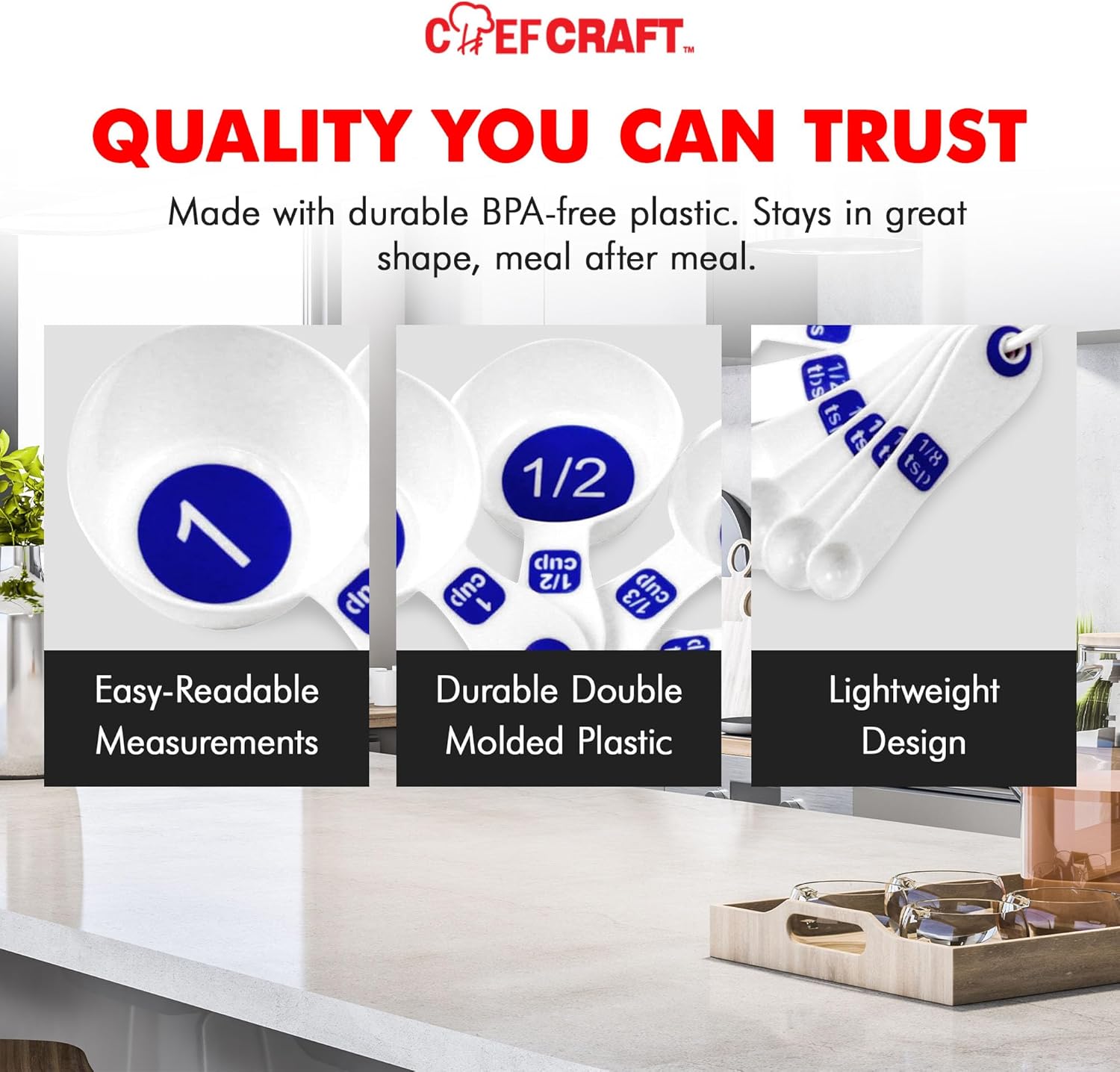 Chef Craft Easy to Read Plastic Measuring Cup Set, 10 Piece, white