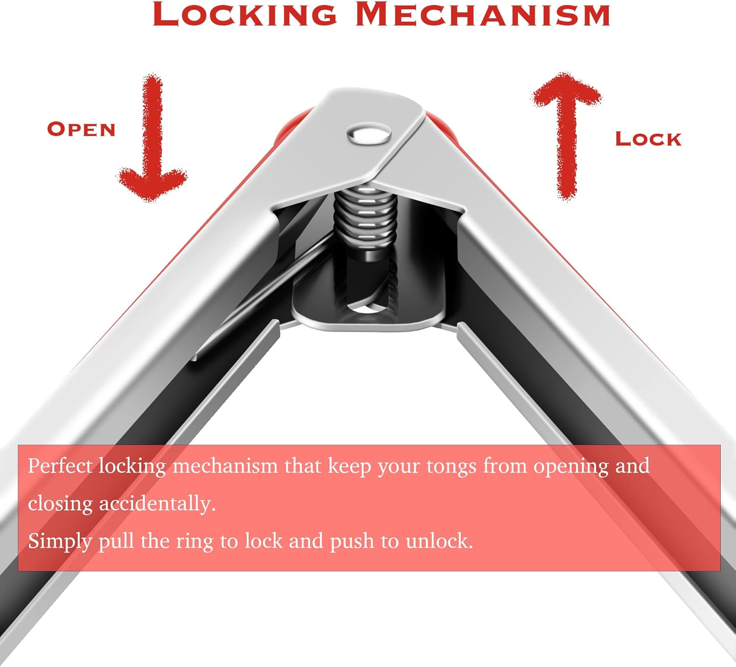 Set of 2 Kitchen Tongs 9-Inch & 12-Inch, Premium Stainless Steel BPA Free Silicone Non-Stick Grilling Barbeque Cooking Locking Food Tongs, Red