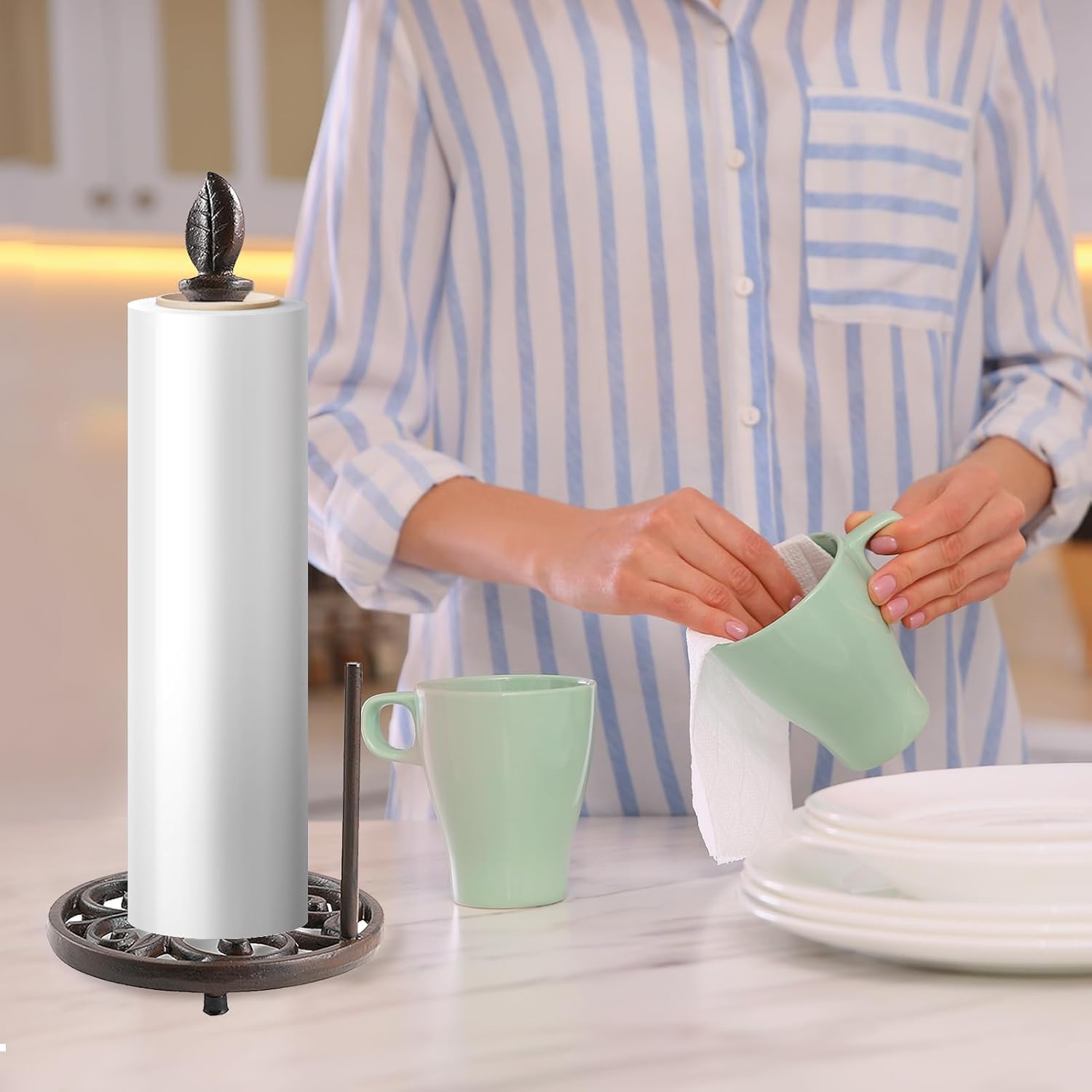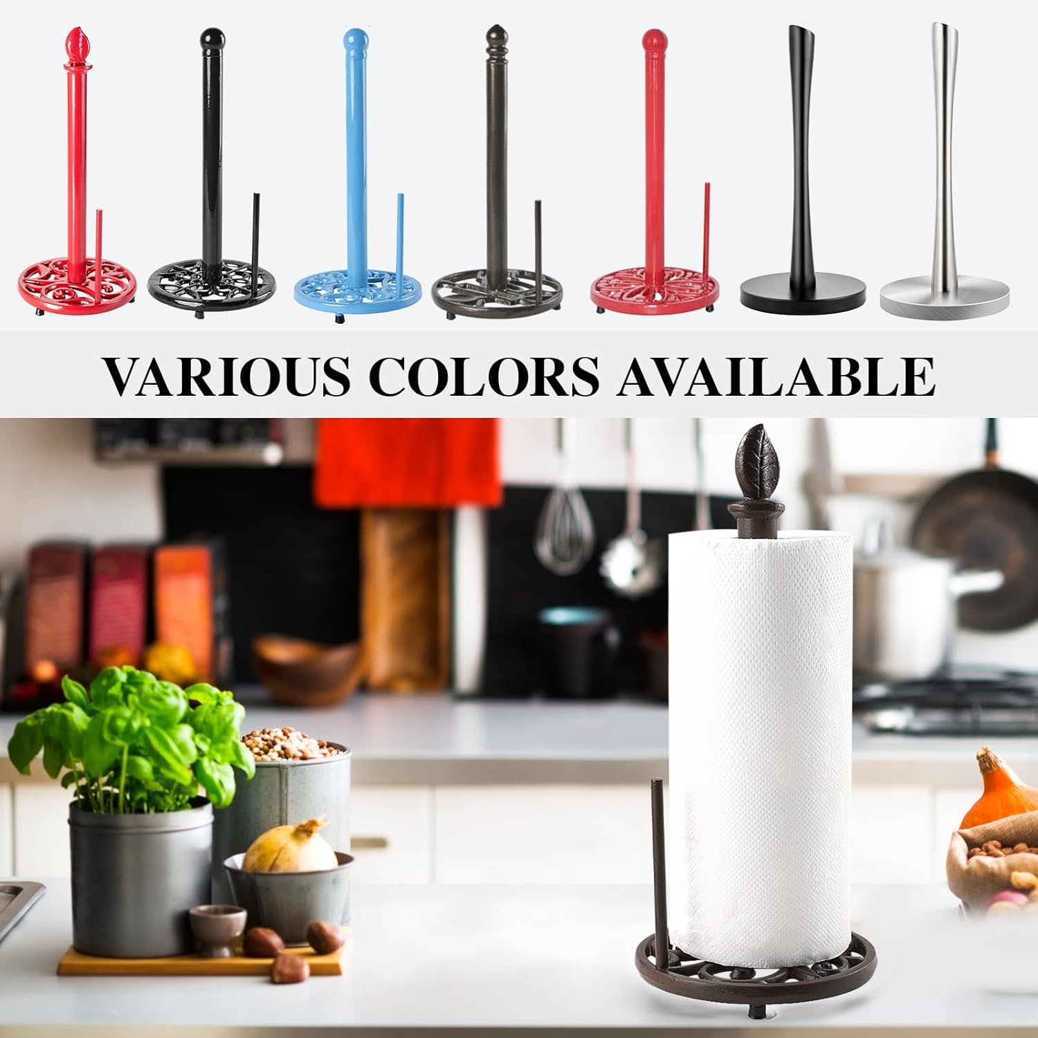 - Sturdy & Stable: Metal paper towel holder made of cast iron material which is Rustless, Fastness, Wear-resistant, Heat-resistant, Stable shape, Strong tension, Anti-aging, and Long service life. Wipe clean with a damp cloth