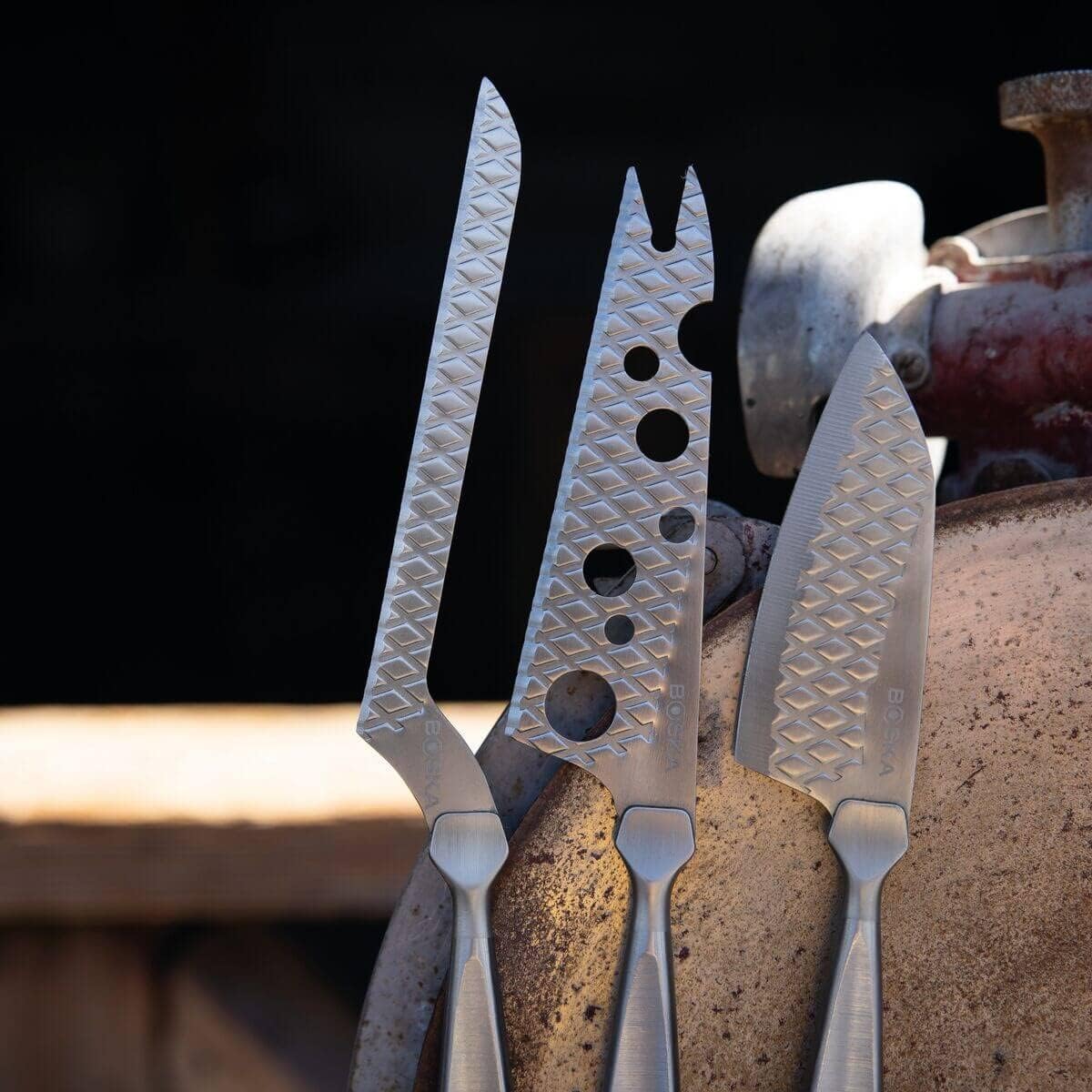 Boska Stainless Steel Cheese 3 Knife Set - Great for Cheese - Multi-Purpose Cheese Slicer - Handheld Slicer - Silver Non-Stick - Dishwasher Safe - For Kitchen Cooking