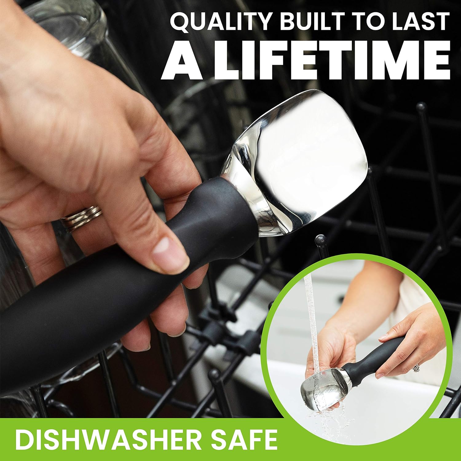 Spring Chef 18/8 Stainless Steel Ice Cream Scoop with Soft Grip Handle - Heavy Duty Ice Cream Scooper for Gelato, Sorbet, Cookie Dough, Melon, Sundae - Dishwasher Safe Kitchen Tool - Black