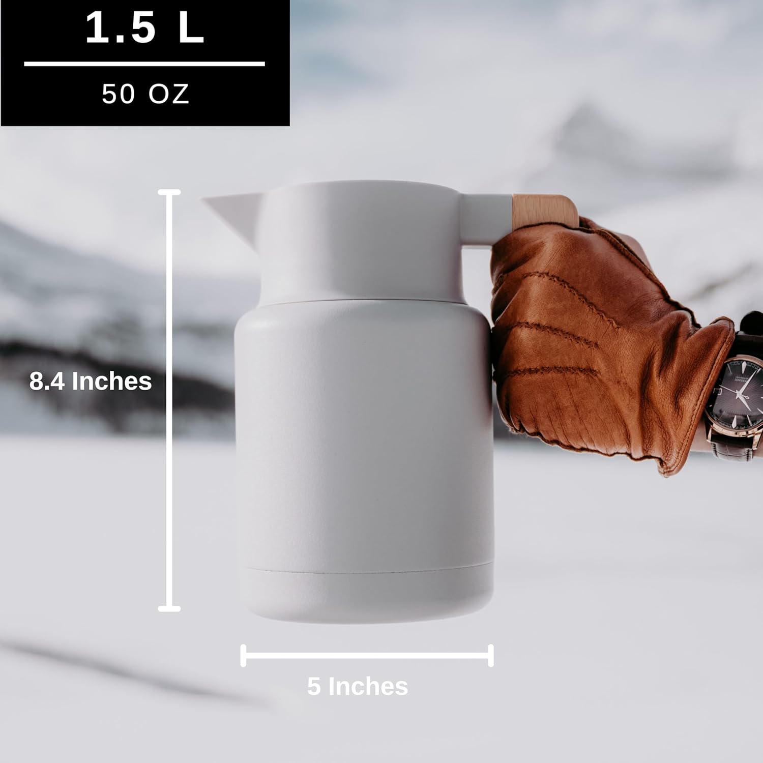 Hastings Collective Thermal Coffee Carafe 50 Oz - Large Stainless Steel Insulated Carafe - 1.5 Liter Double Walled Vacuum Thermos Coffee and Beverage Dispenser with Tea Infuser and Strainer (Gray)