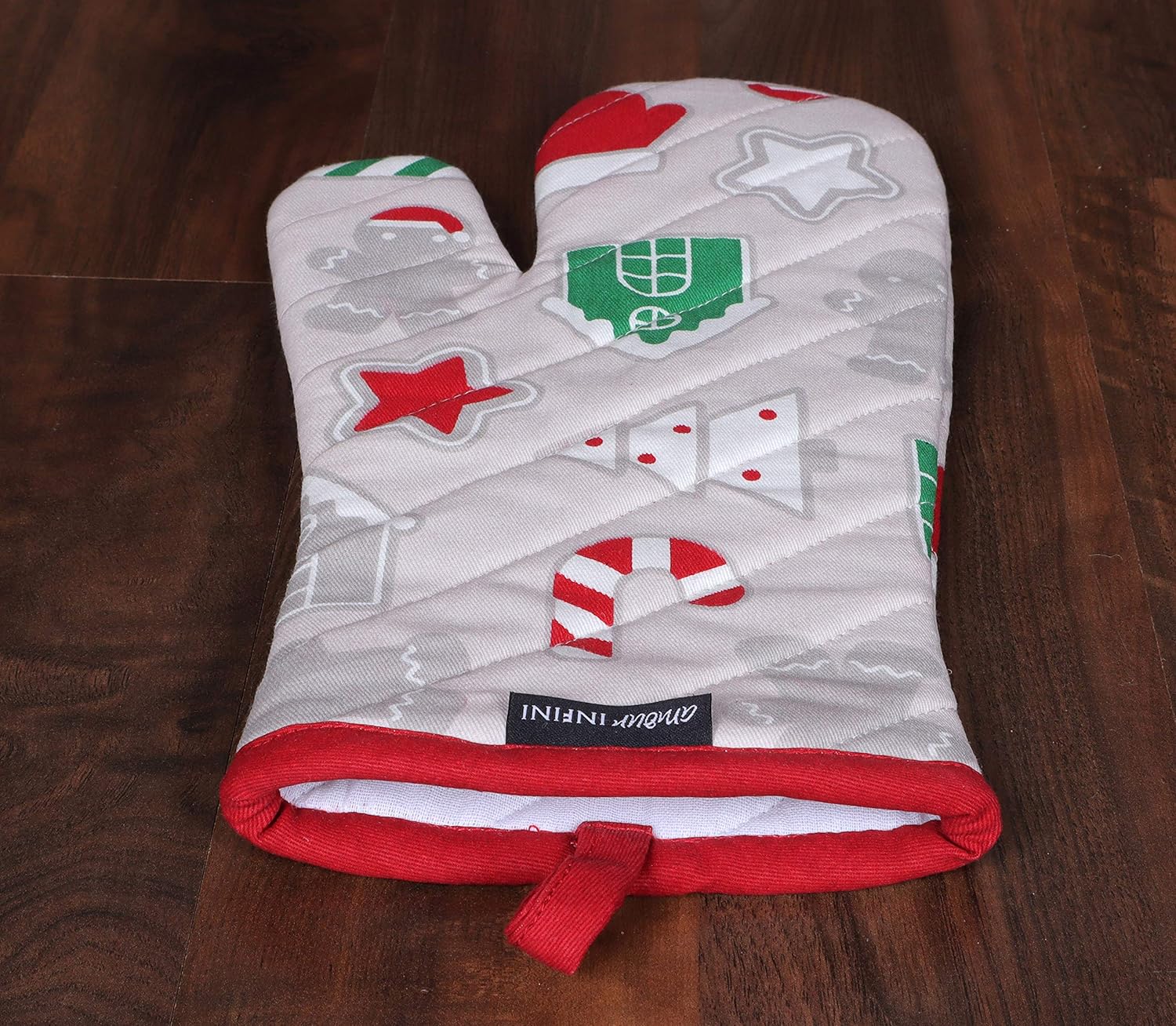 AMOUR INFINI Oven Mitts Set of 1 Quilted Liner with Hanging Loop Non Slip, Heat Resistant, Washable Reusable Oven Mitt Quilted Liner with Hanging Loop