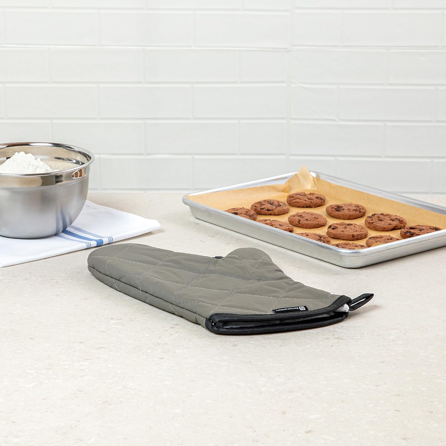 Restaurantware 13.7 x 8 Inch Heavy-Duty Oven Mitt 1 Flame Retardant Kitchen Glove - With Thumb Guard Hanging Loop Gray Cotton Quilted Oven Mitts Heat-Resistant For Cooking And Baking