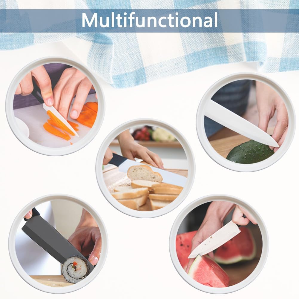- Classic white blade and black handle. Include matching BPA free PerfectFit sheaths for each blade. 6" Chef knife, 4" Paring knife, 6" Bread/Potato knife.