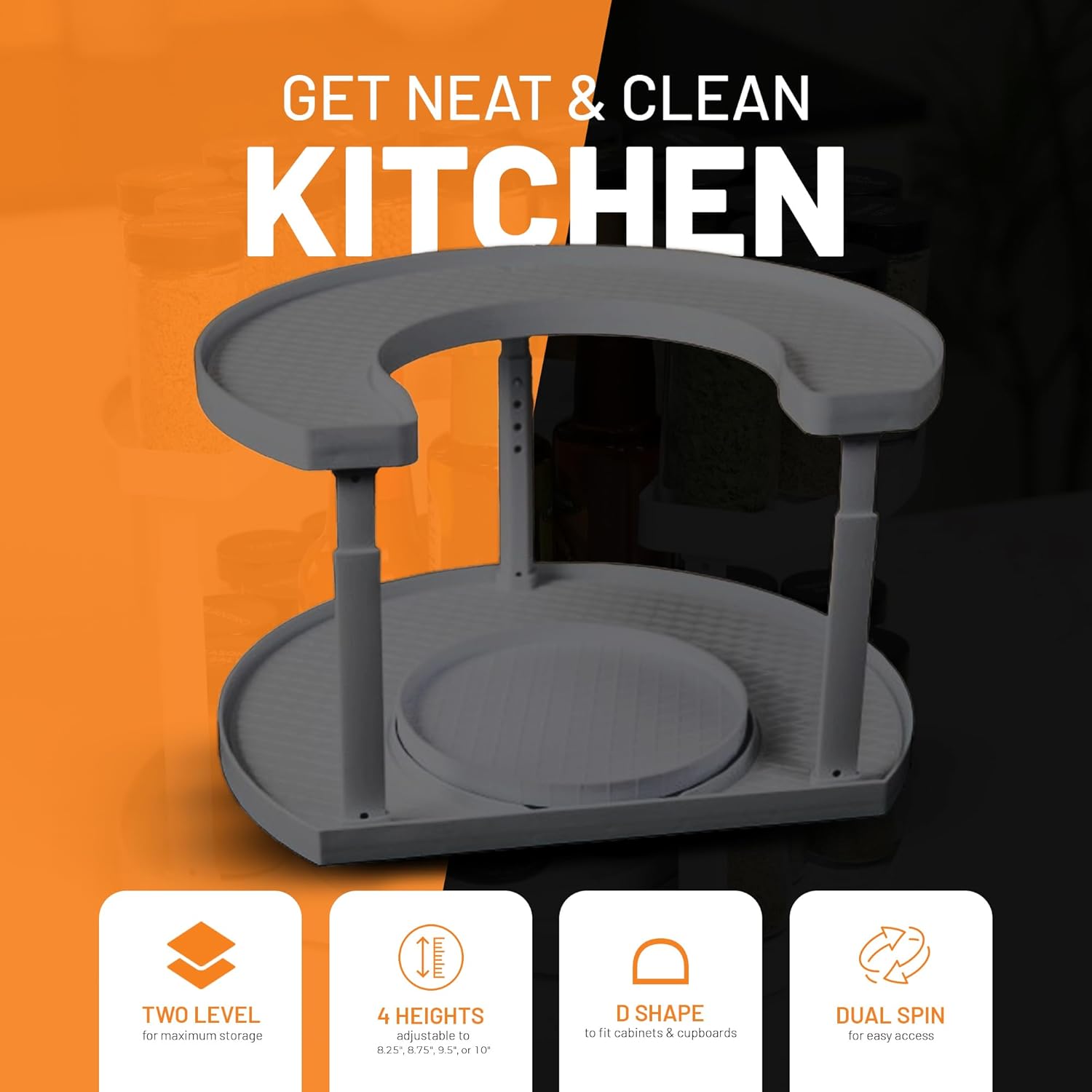 2-Tier Spice Rack Organizer for Cabinet | Rotating Lazy Susan Spice Organizer Holds 40 Spice Jars | Countertop & Pantry Spice Shelf for Kitchen Organization & Storage (Gray)