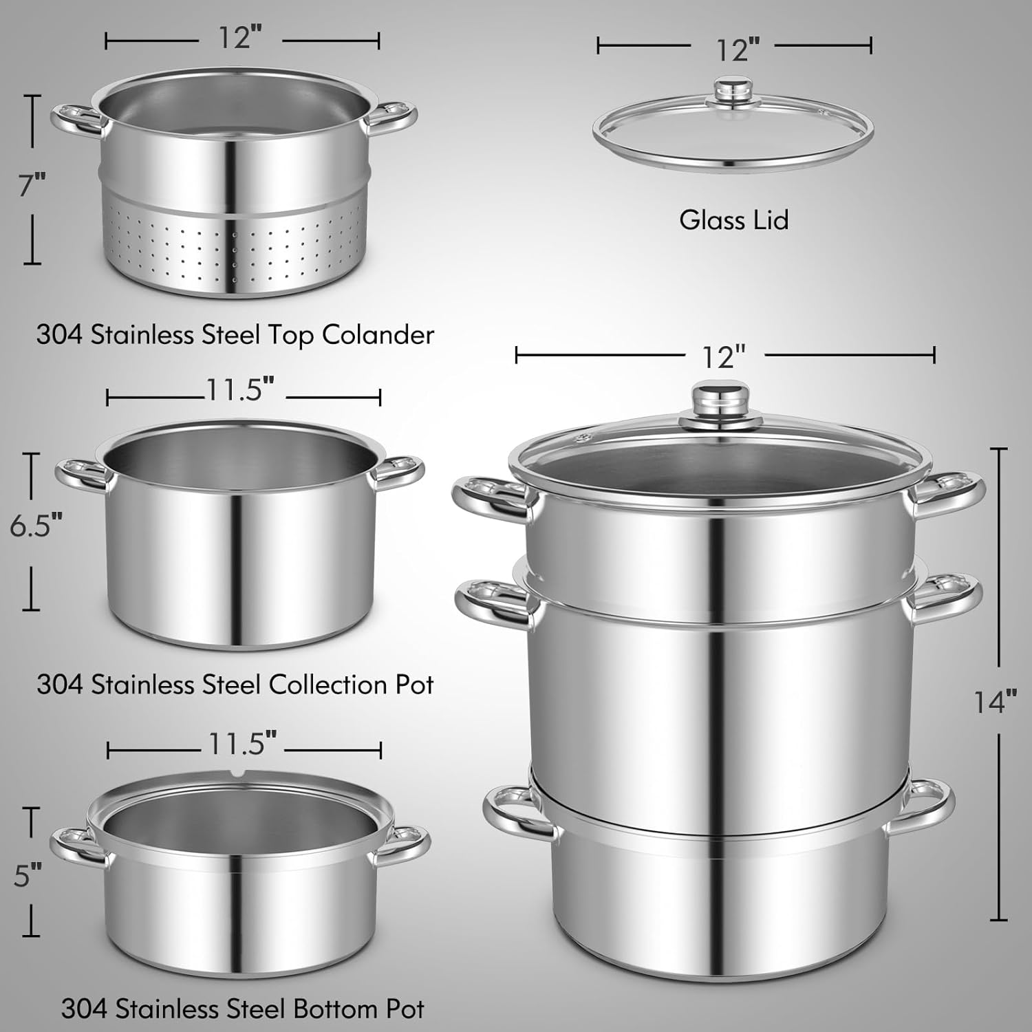 - ๐[Durable Stainless Steel Material]- Our fruit or vegetable juicer steamer is made of durable and long-lasting stainless steel which is clean and sanitary to ensure healthy and long-term use. Handles are all crafted of high quality stainless steel which is firmly welded on the steamer and brings you much convenience to hold and transport the juicer steamer.