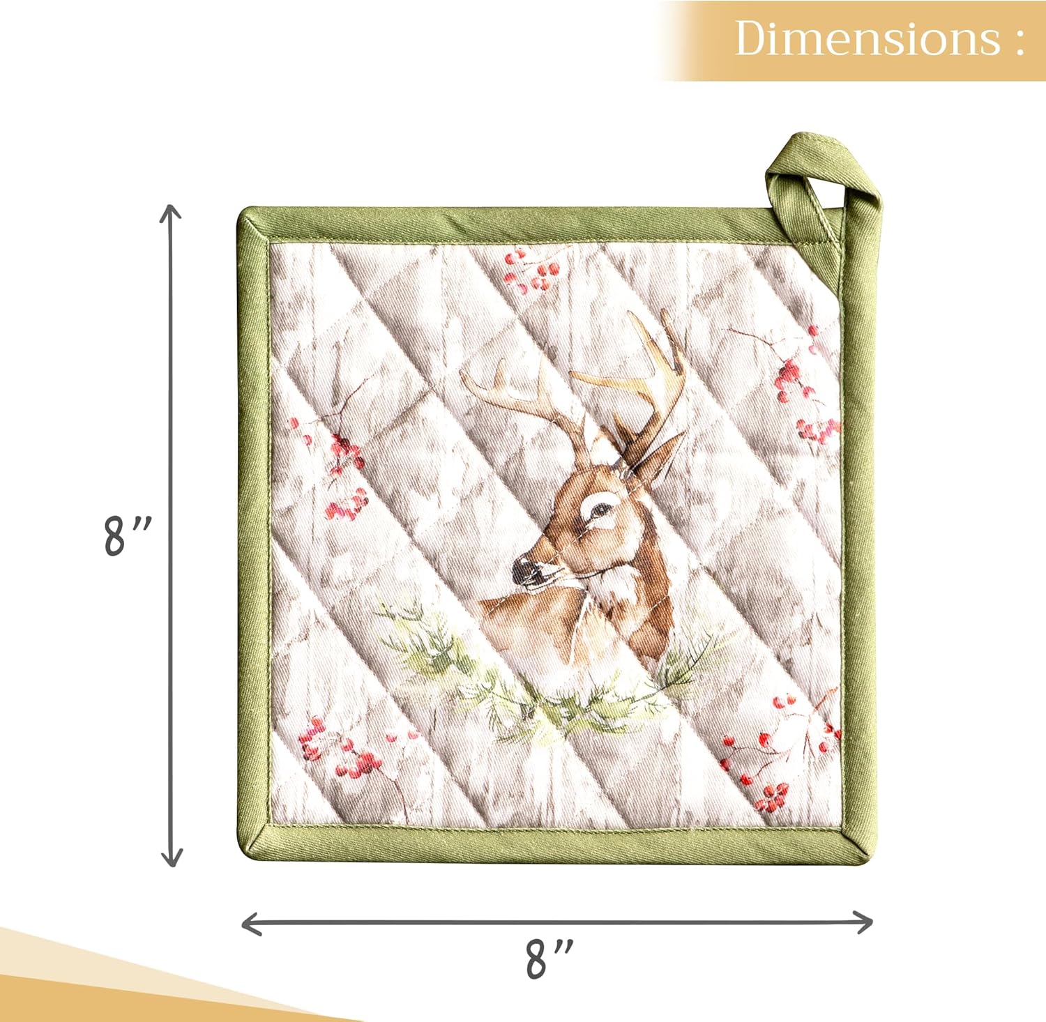 Maison d' Hermine Pot Holders Set 100% Cotton Heat Resistant Potholders 8" x 8" Hot Pads with Loop BBQ, Cooking, Baking, Grilling, Kitchen, Handling Hot Pans (Pack of 2, Mountain Life)