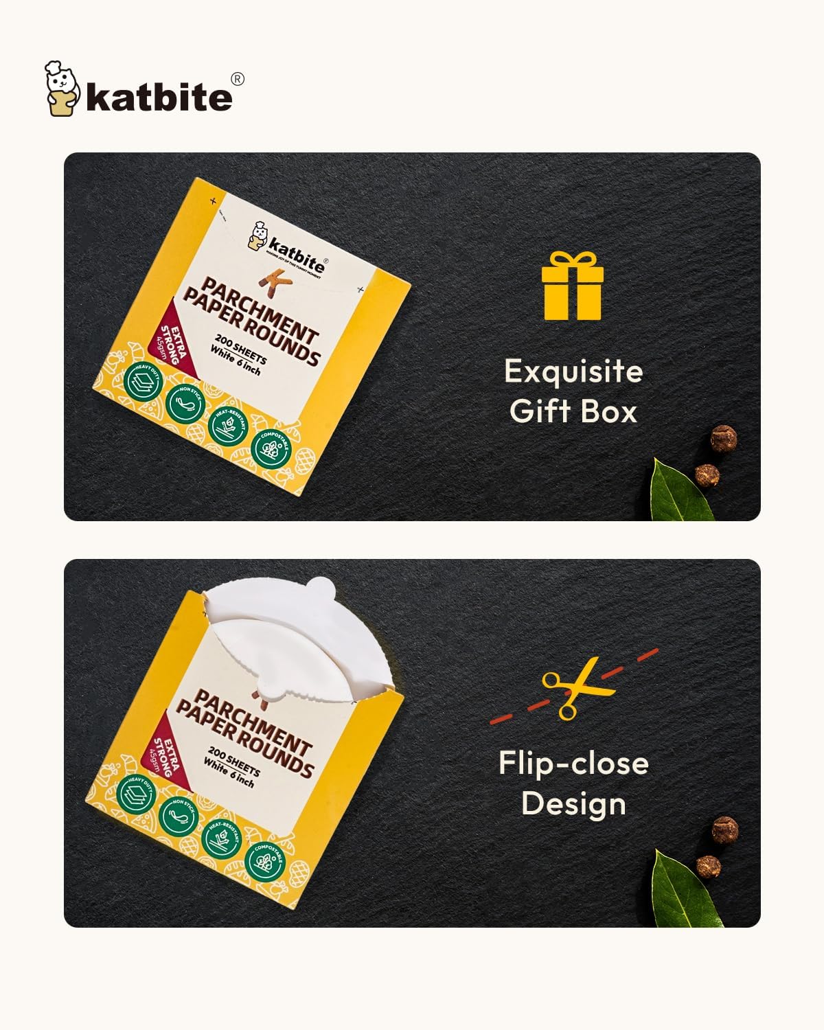 Katbite® 6 Inch 200Pcs Parchment Paper Rounds, Round Baking Sheets Paper, Uses for Cake Baking, Patty Separating, Tortilla Wrapping