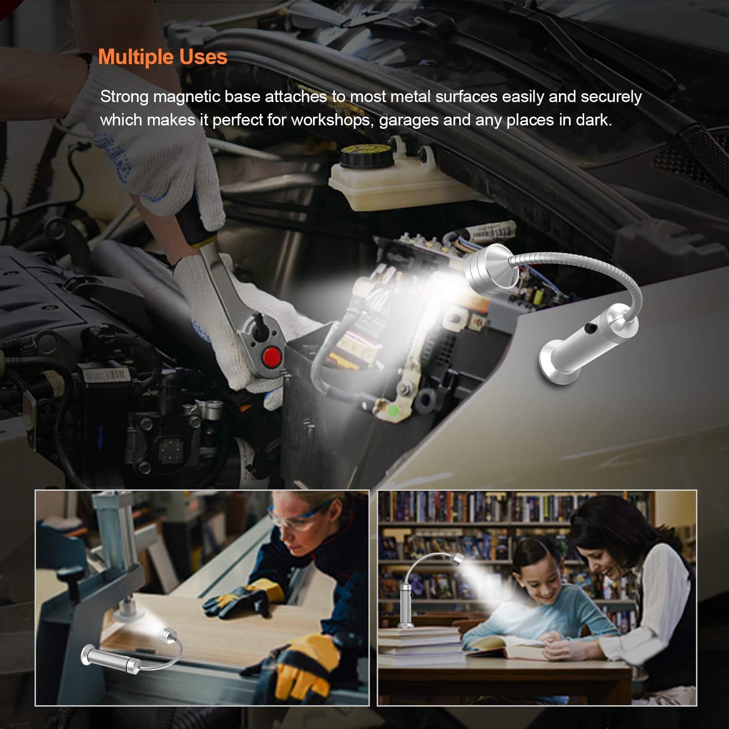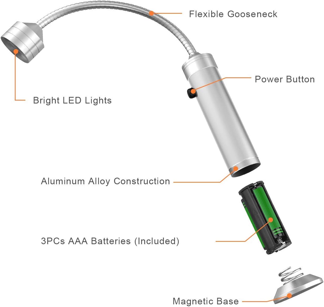 - 【FLEXIBLE GOOSENECK】The 11cm flexible gooseneck can adjust 360 degrees, enabling you to orient the light's beam to exactly where you need it and illuminate every inch of your grill surface