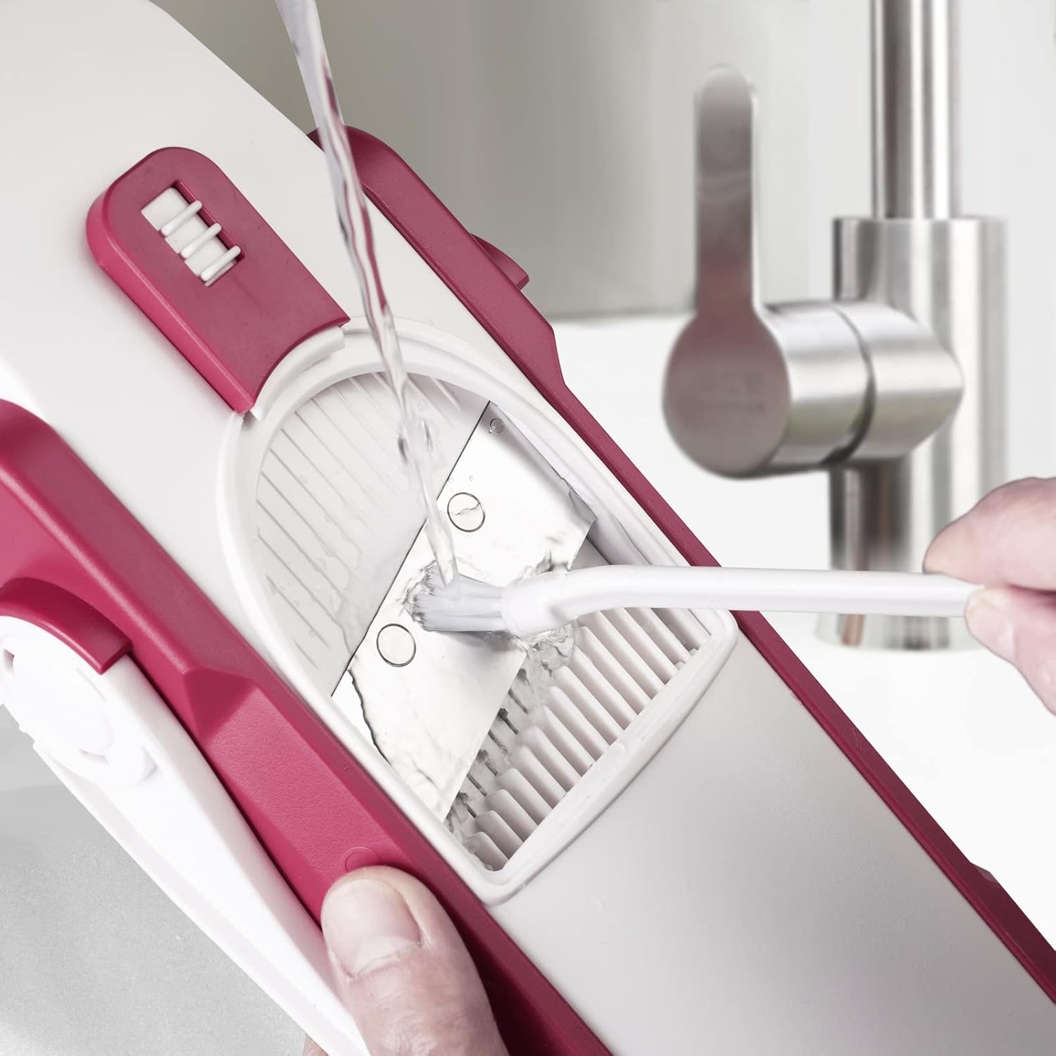 ONCE FOR ALL Safe Mandoline Slicer 5 in 1 Vegetable Cutter, Strips Julienne Dicer Adjustable Thickness 0.1-8 mm for Kitench Fast Meal Prep (Red)