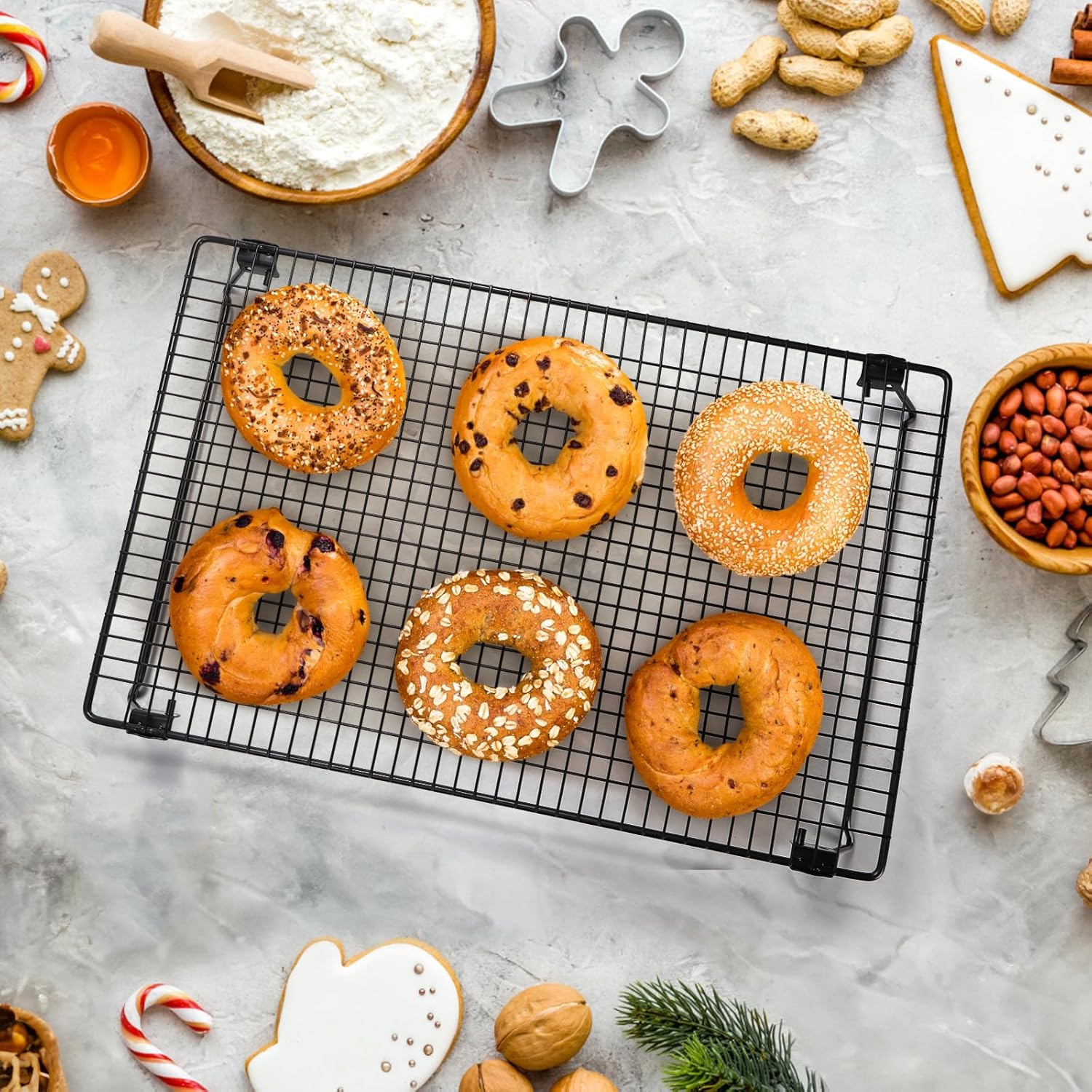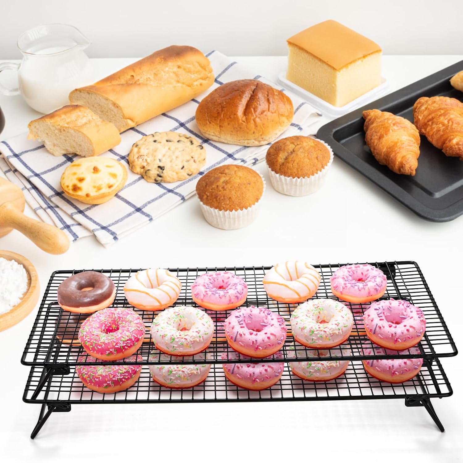 - Cool dozens of cookies or other small treats on an expandable cooling rack.