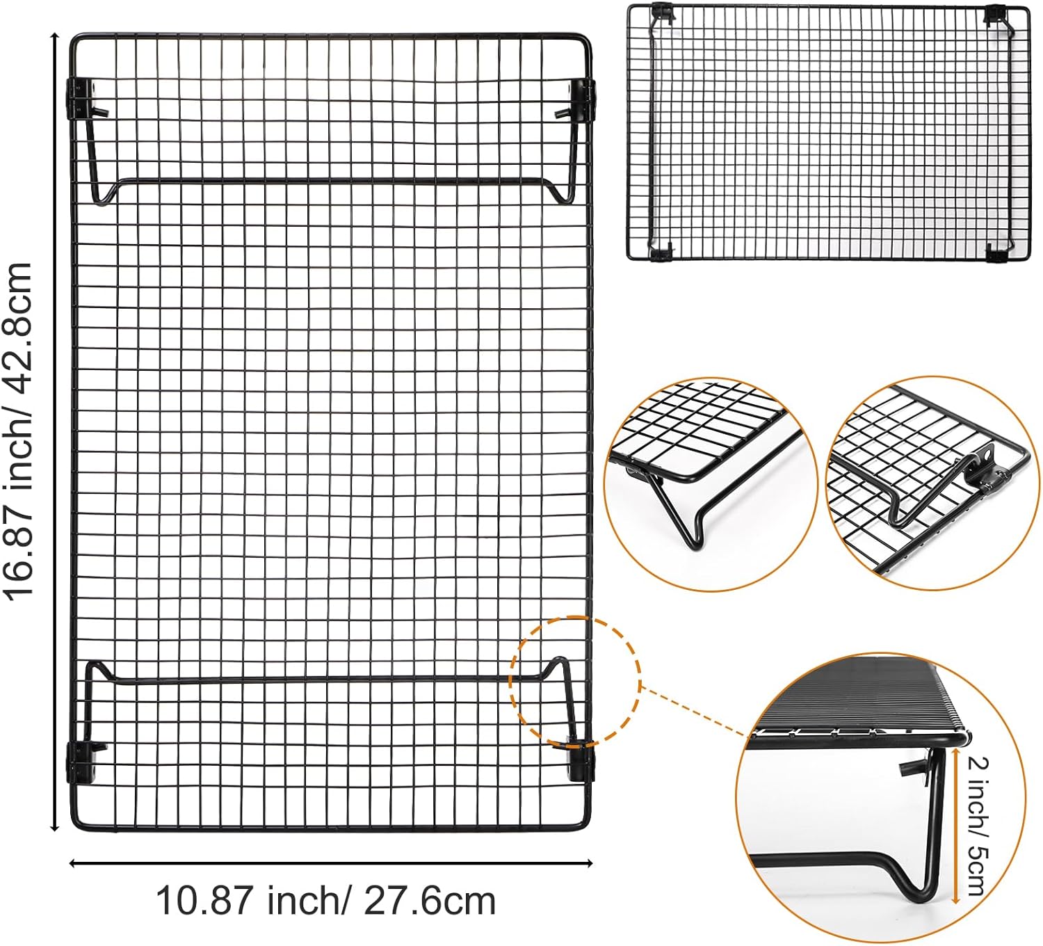 Kingrol 2-Piece Cooling Rack with Collapsible Folding Legs - for Cooking, Roasting, Drying, Grilling (Black)