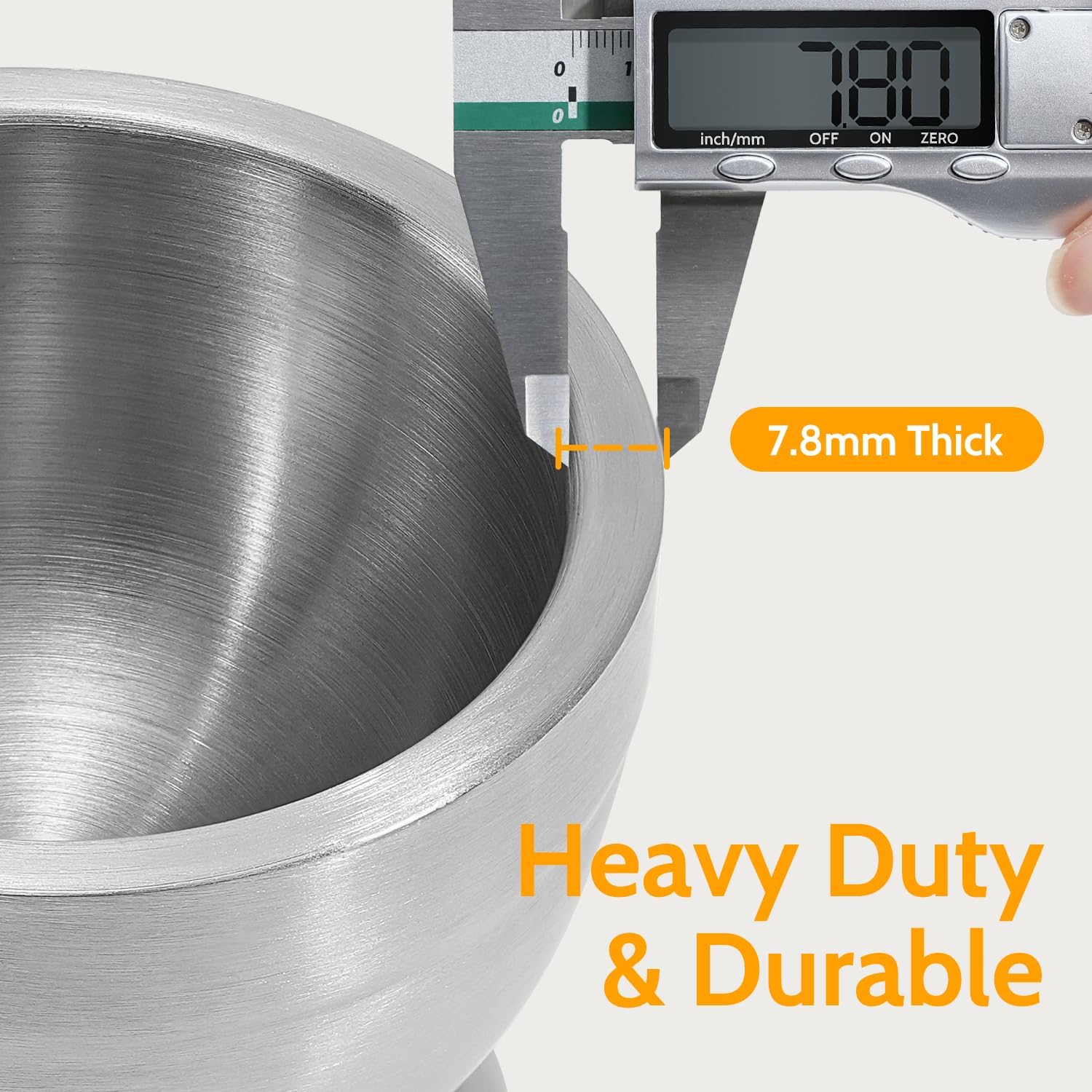 - ROCK-SOLID MORTAR AND PESTLE: A great Christmas gift-easier for you to prepare food for Thanksgiving and Christmas. Food grade indestructible 18/8 stainless steel Made, rustproof and anti-Corrosion. Pretty sturdy, durable, non-toxic, Long-lifespan, can be used for decades.