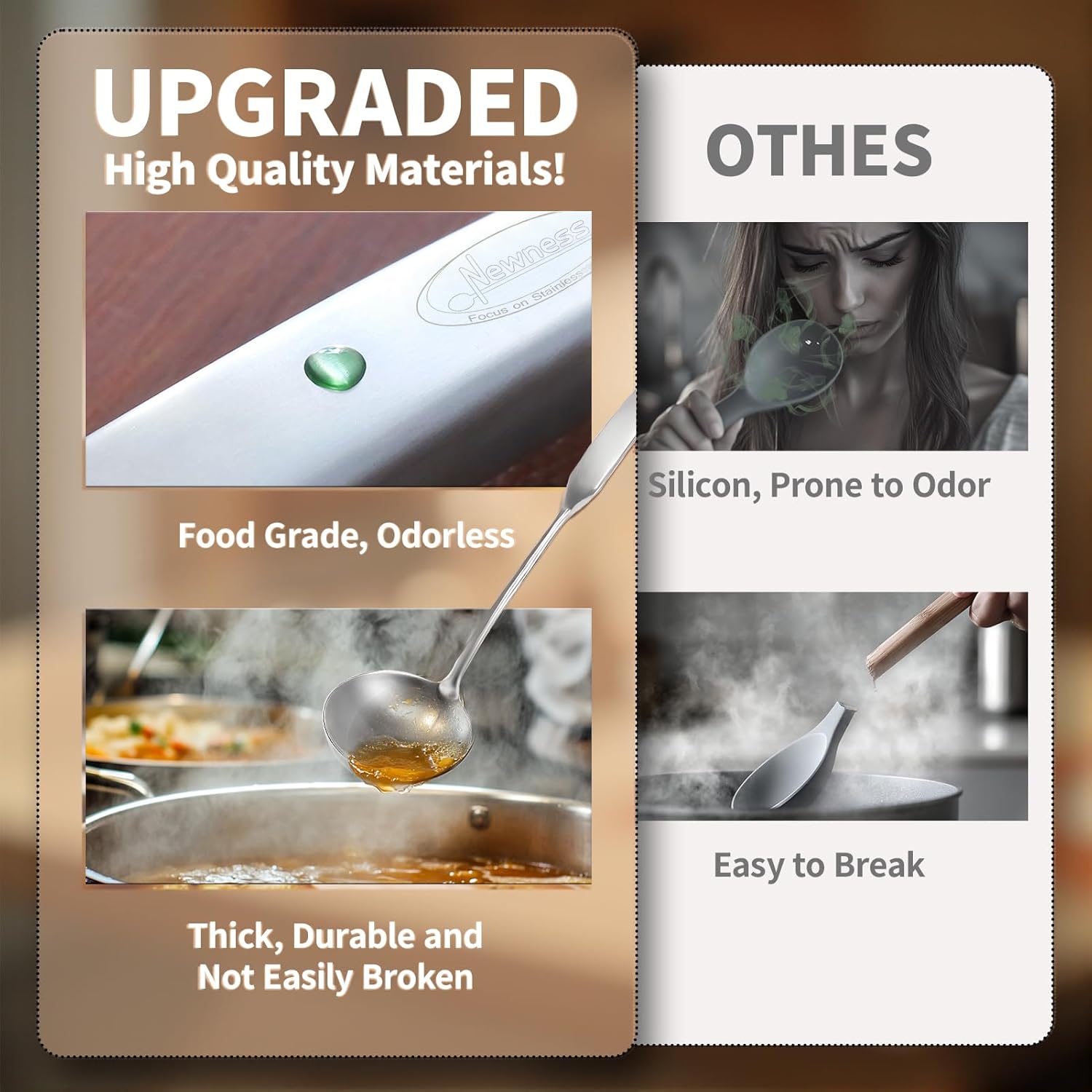 Newness 4 Pcs Cooking Utensils Set, 304 Stainless Steel Kitchen Utensils Set, Metal Kitchen Accessories, Include Soup Ladle, Slotted Skimmer Spoon, Spaghetti Spoon and Spatula, Dishwasher Safe