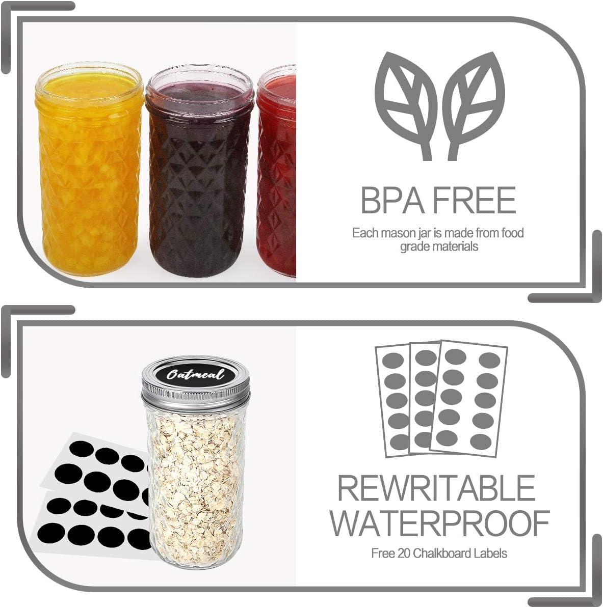 VERONES Mason Jars 12 OZ, Canning Jars Jelly Jars With Regular Lids, Ideal for Jam, Honey, Wedding Favors, Shower Favors, 20 PACK