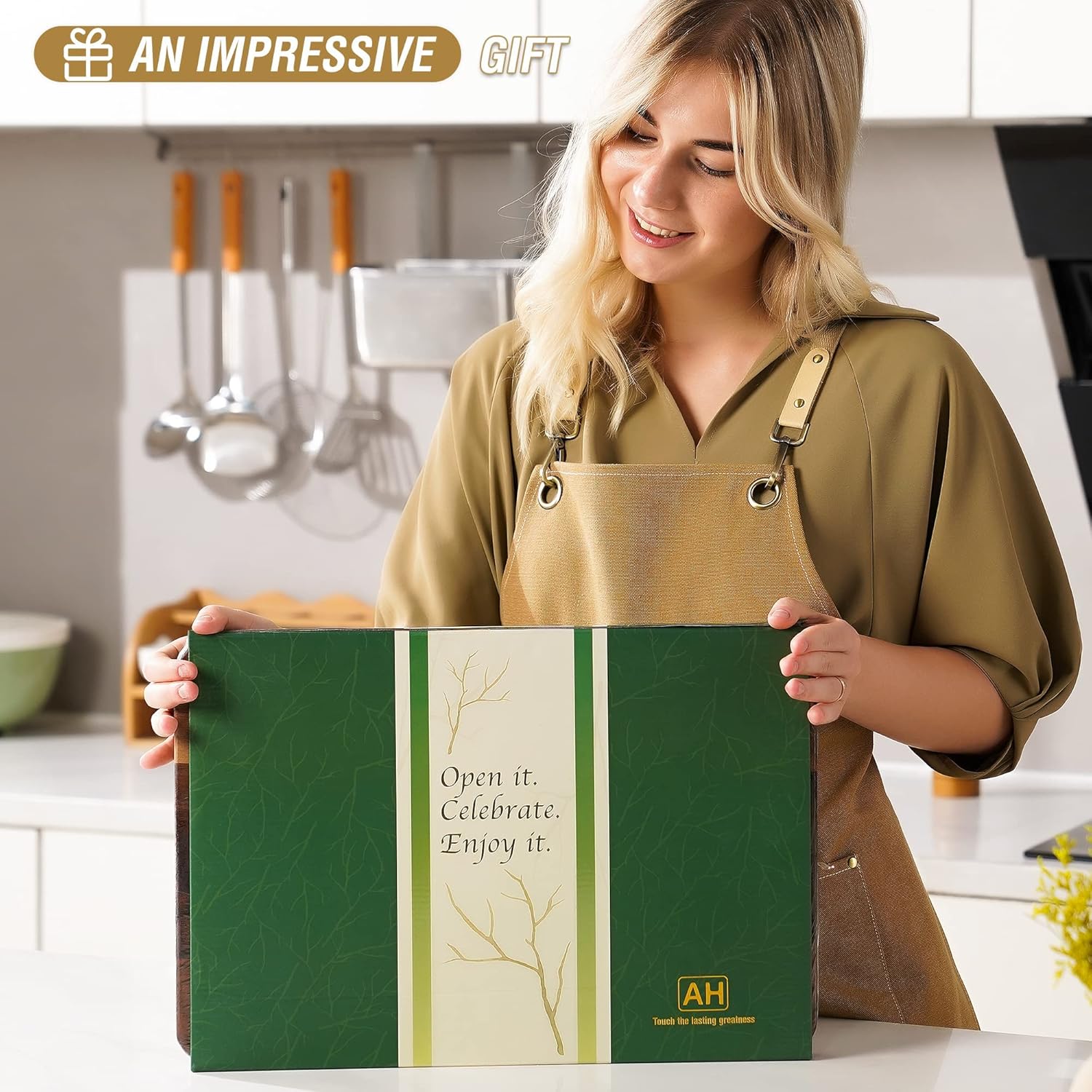 AZRHOM Large Walnut Wood Cutting Board for Kitchen 18x12 (Gift Box) with Juice Groove Handles Non-slip Mats Thick Reversible Butcher Block Chopping Board Cheese Charcuterie Boardrd