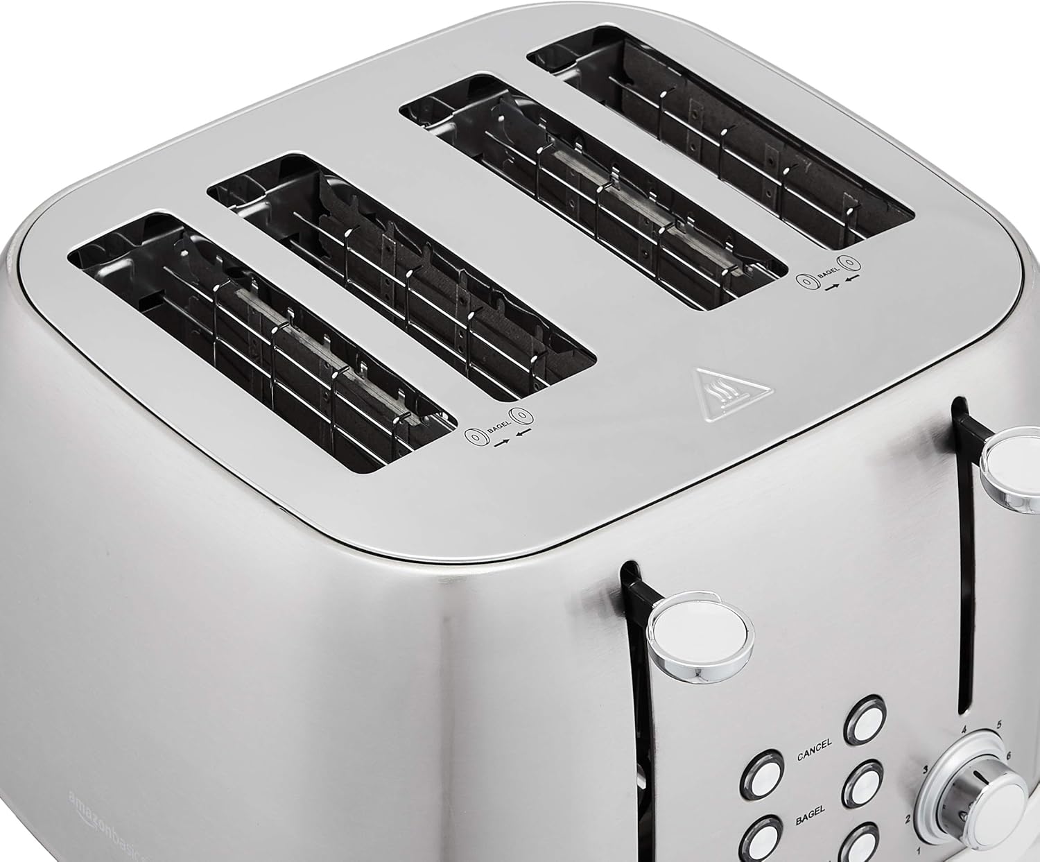 Amazon Basics 4 Slice Toaster with 6 Browning Settings, Removable Easy-to-Clean Crumb Tray, Cancel Button, 1600W, Brushed Silver