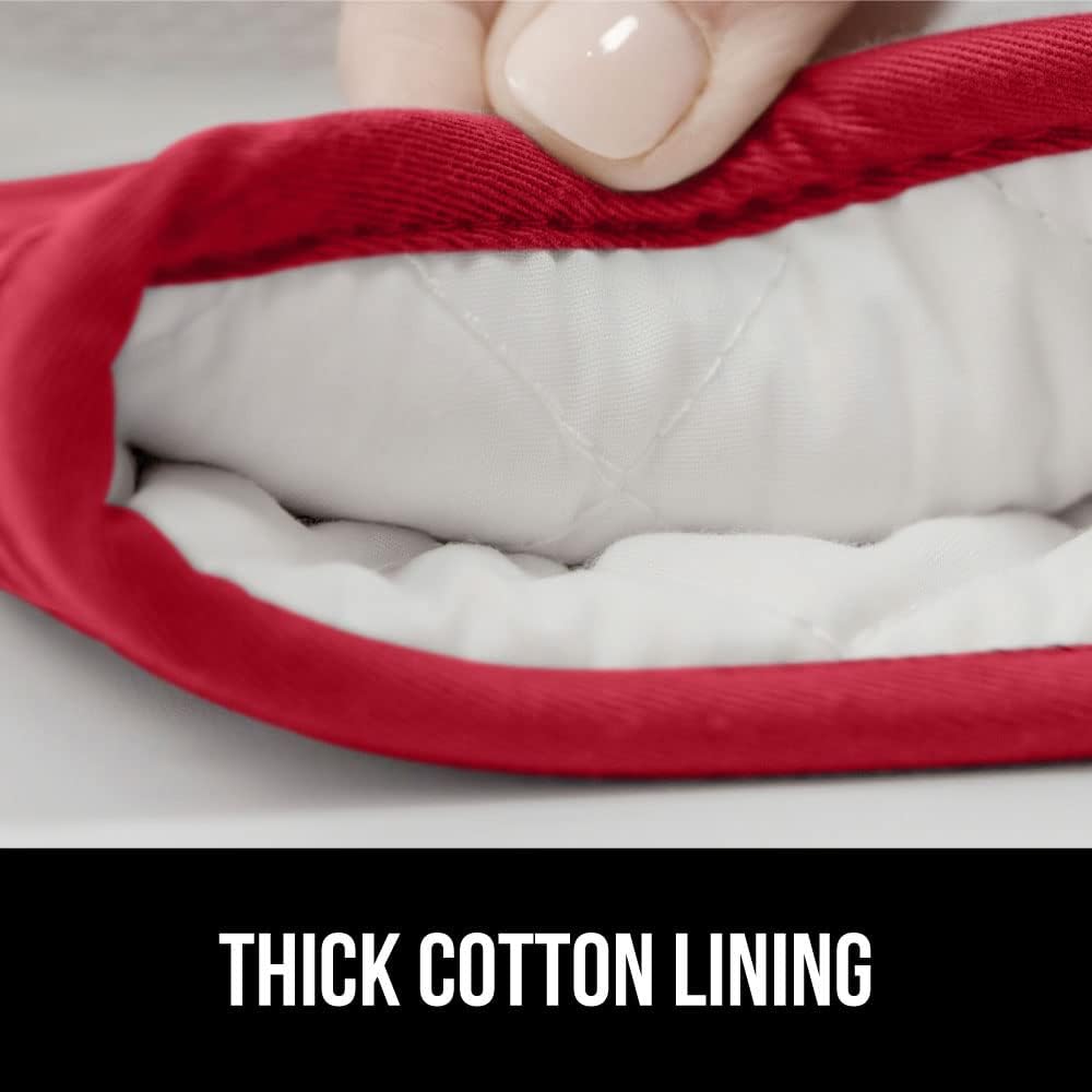 GORILLA GRIP BPA-Free Soft Silicone Oven Mitts, Heat Resistant and Waterproof Cooking Gloves, Thick Cotton Lining, Flexible Gripping for Baking Grilling, Kitchen Potholders Set of 2, 12.5x8.3, Red