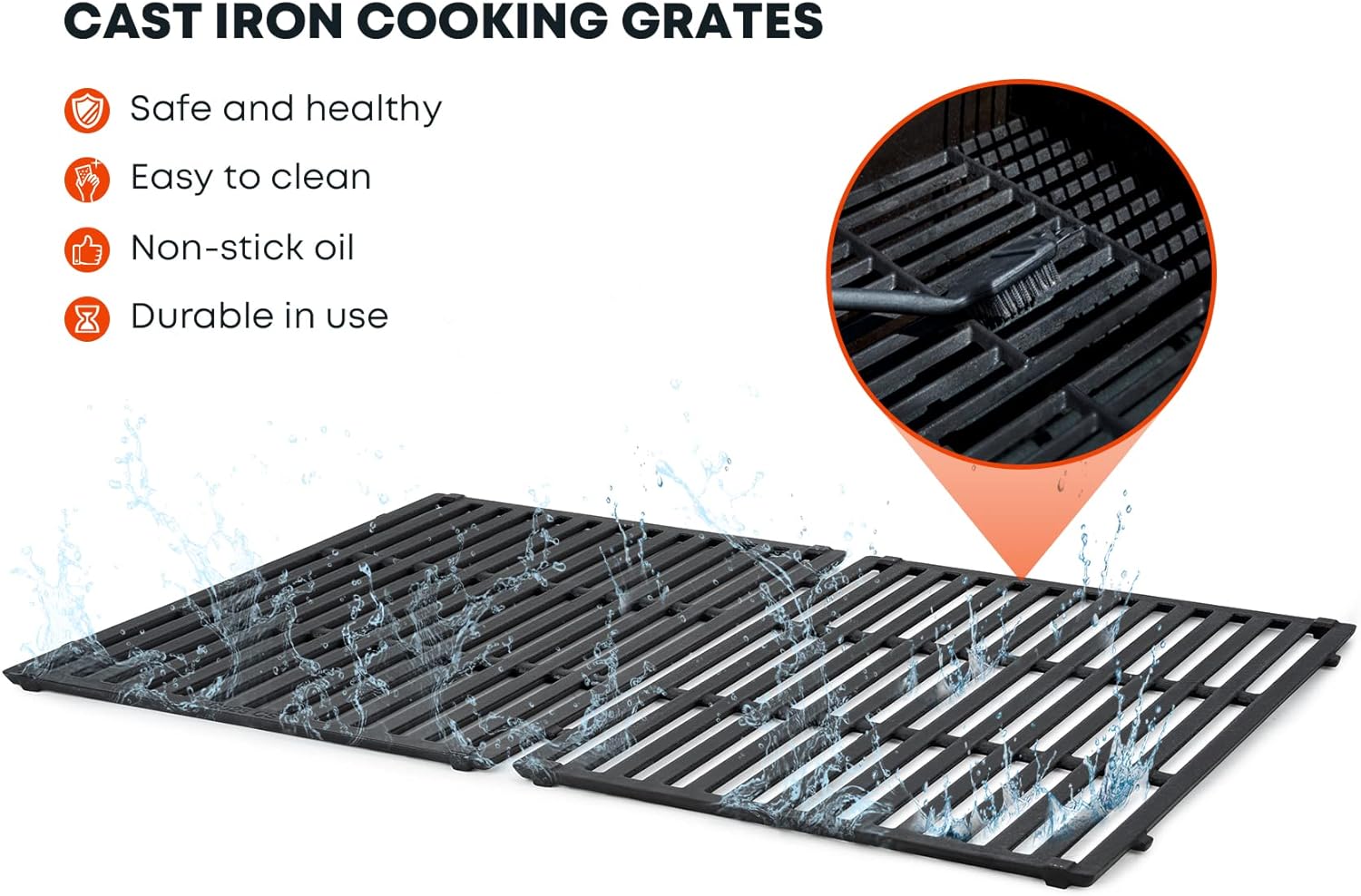 - 【NON-STICK】Before you cook on them, take some high temperature oil such as Peanut or Grape Seed, soak a paper towel and rub oil on the grills, and let the oil burn off first. The food does not stick to the grills. 【EASY TO CLEAN】Just use brush, add some soap and water. Always keep them dry to extend the service life.