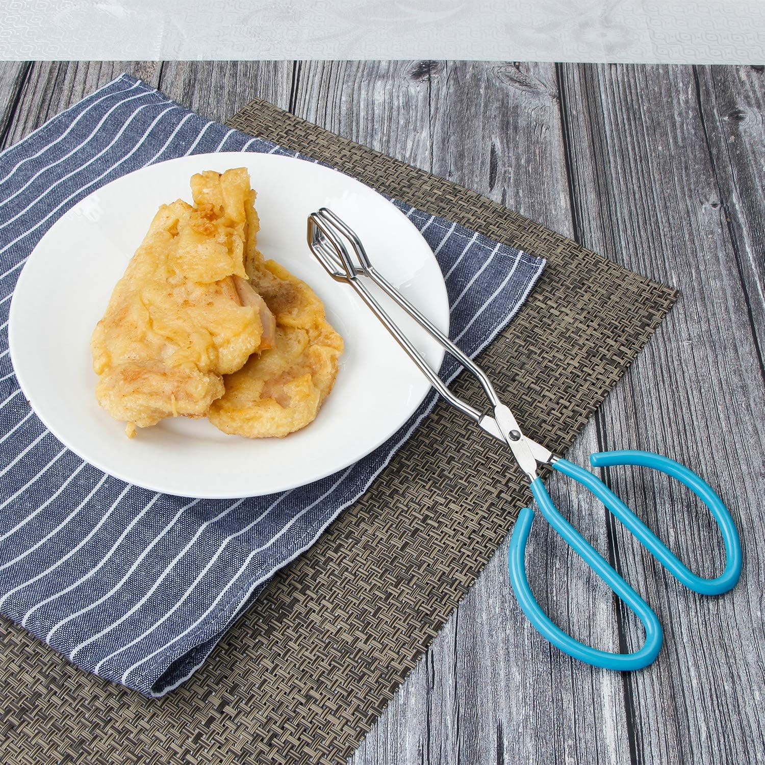 - MULTI-PURPOSE TONGS: The heavy-duty scissors tongs can be used for cheese, fish, crab, chicken, turkey, burger, asparagus,home cooking, outdoor barbecue, buffet and all kinds of parties. It is truly a multipurpose tool