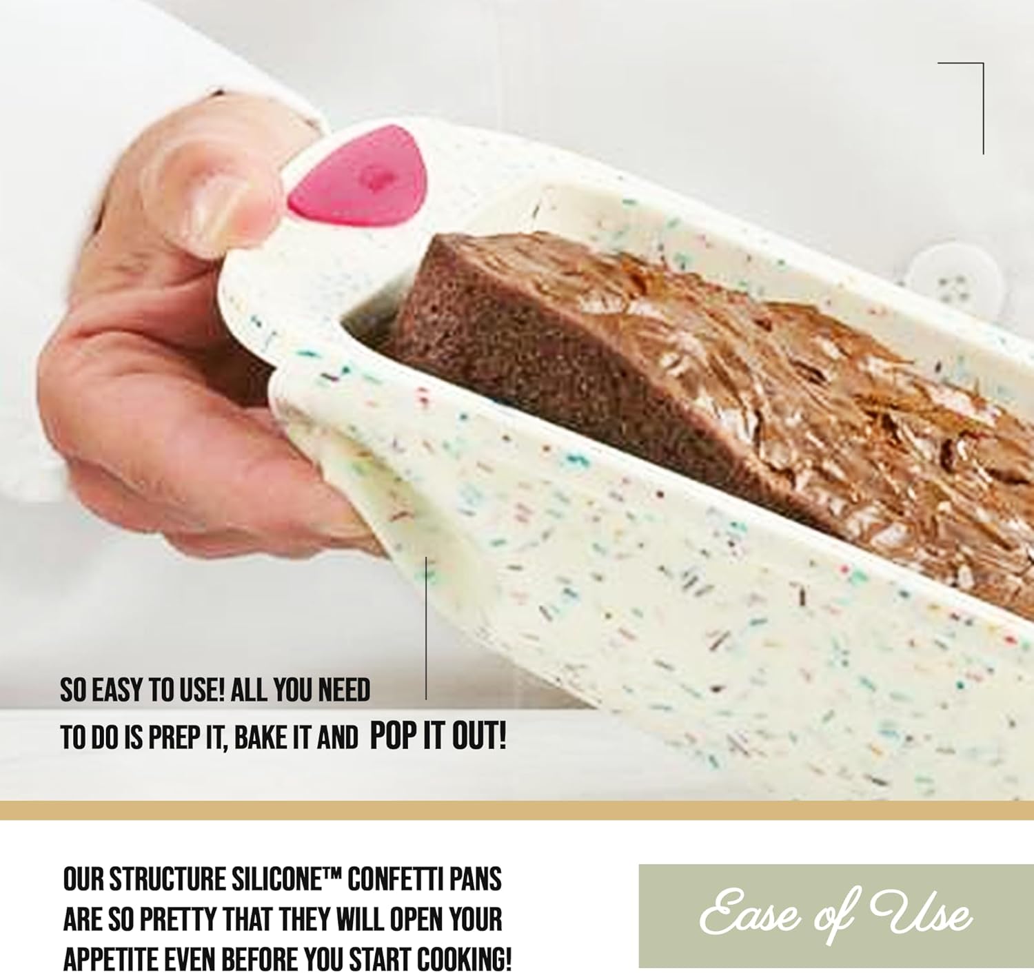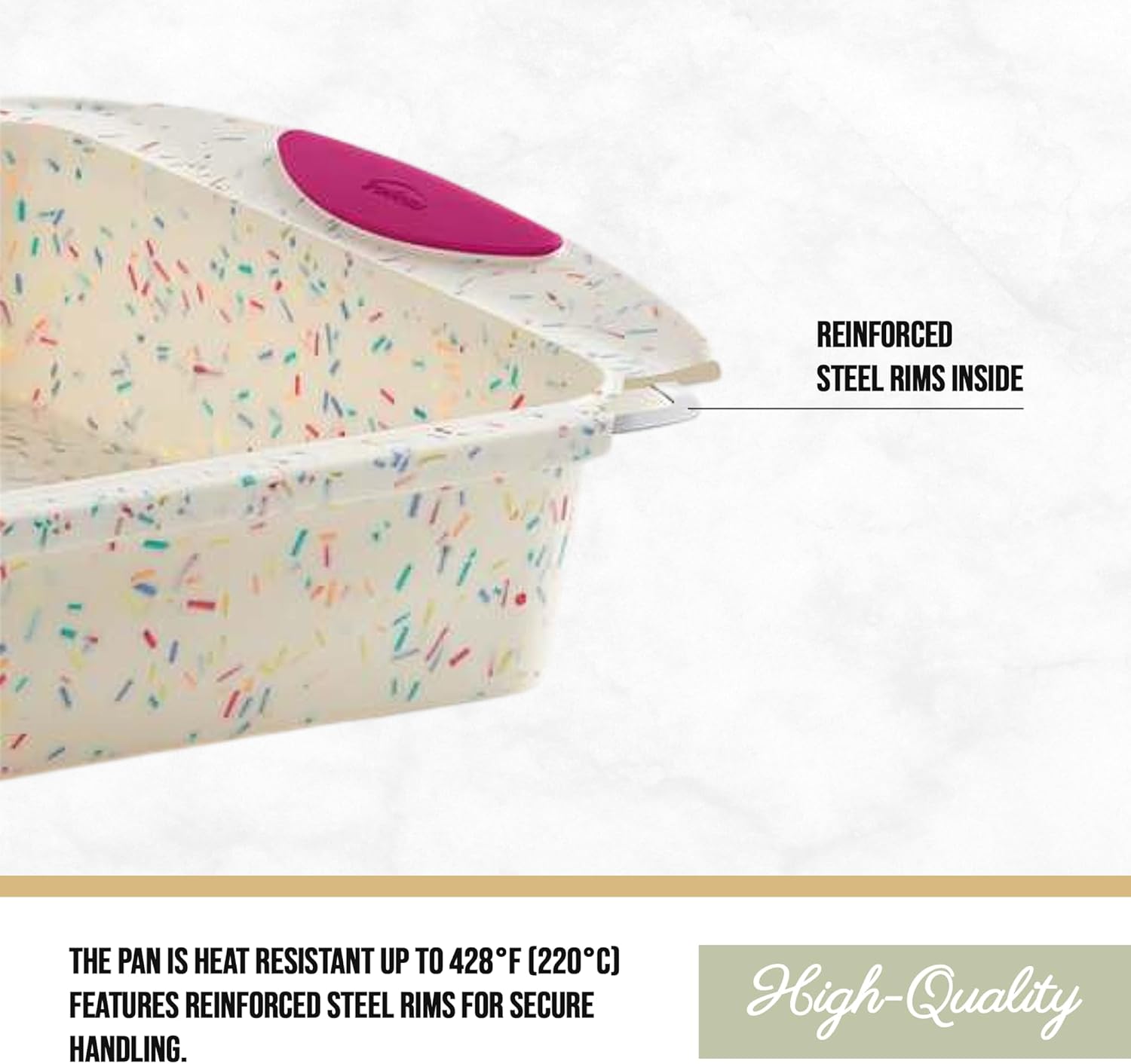 Trudeau 8x8in Confetti Silicone Cake Pan – Reinforced Hybrid of Flexible Silicone and Hard Lining for Shape Stability – Nonstick, BPA Free, Oven Safe to 428°F, and Dishwasher Safe