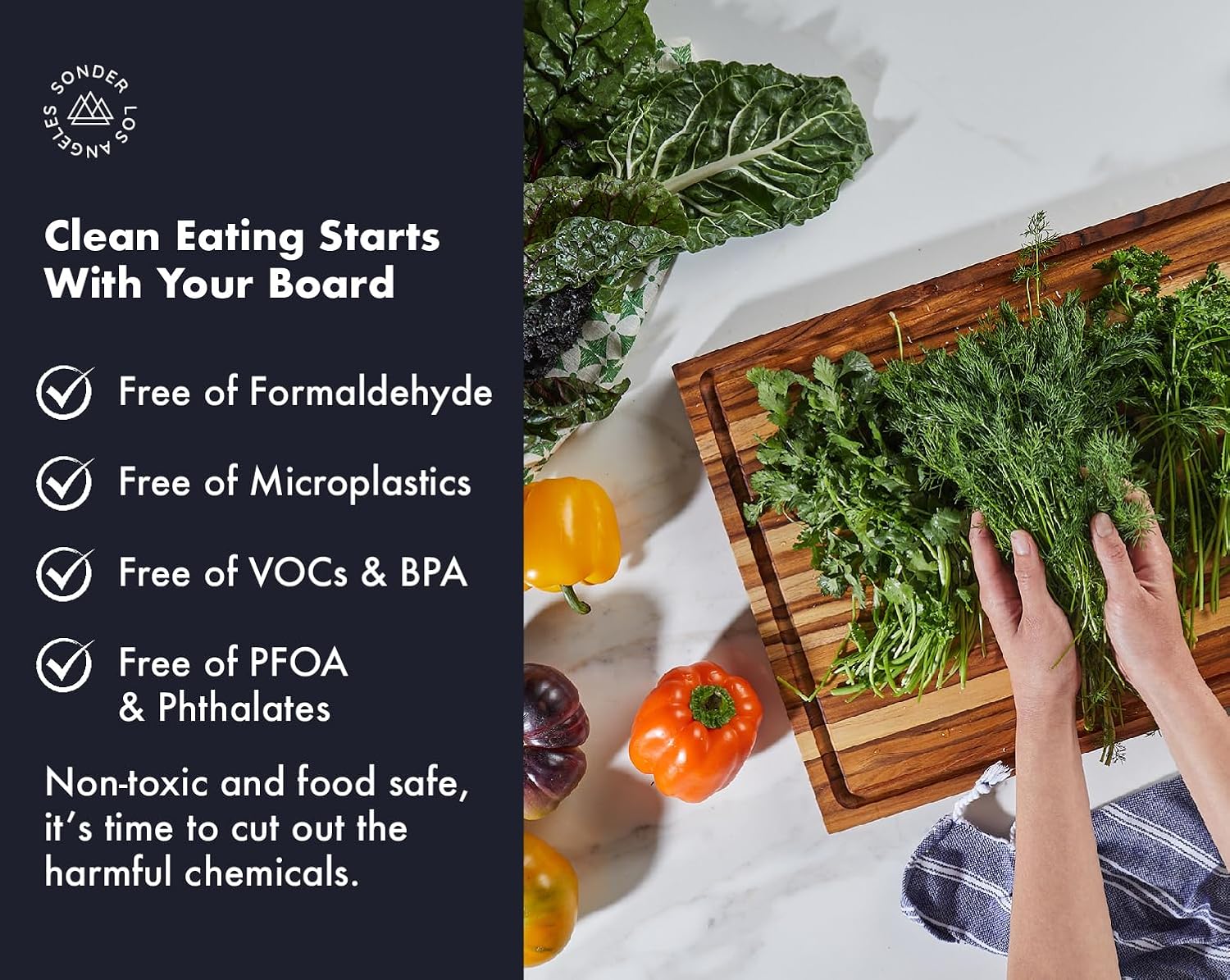 Sonder Los Angeles, Large Teak Wood Cutting Board for Kitchen with Juice Groove, Reversible Charcuterie Butcher Block 18x14x1.25 in (Gift Box Included)