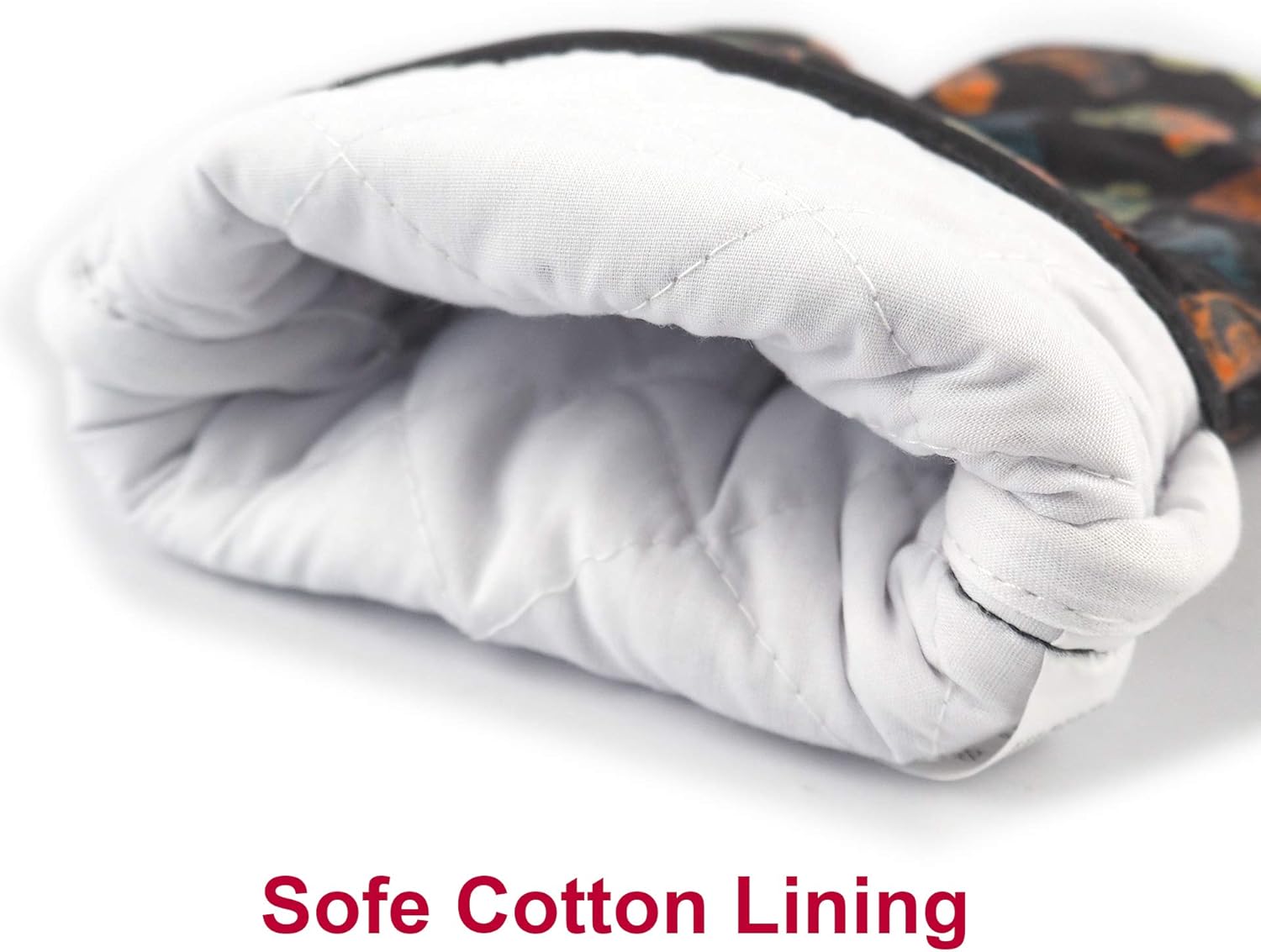Oven Mitts Gloves 1 Pair Heat Resistant 480 ℉ Non Slip Clear Silicone Printed Rooster Comfortable Cotton Lining Kitchen Men Cooking Barbecue Machine Washable (Rooster, Black Mittens)