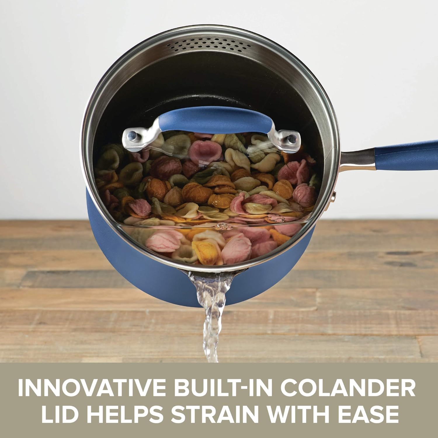 Anolon Advanced Home Hard Anodized Nonstick Sauce Pan/Saucepan with Straining and Lid, 2 Quart (2 Qt Straining Saucepan, Indigo)