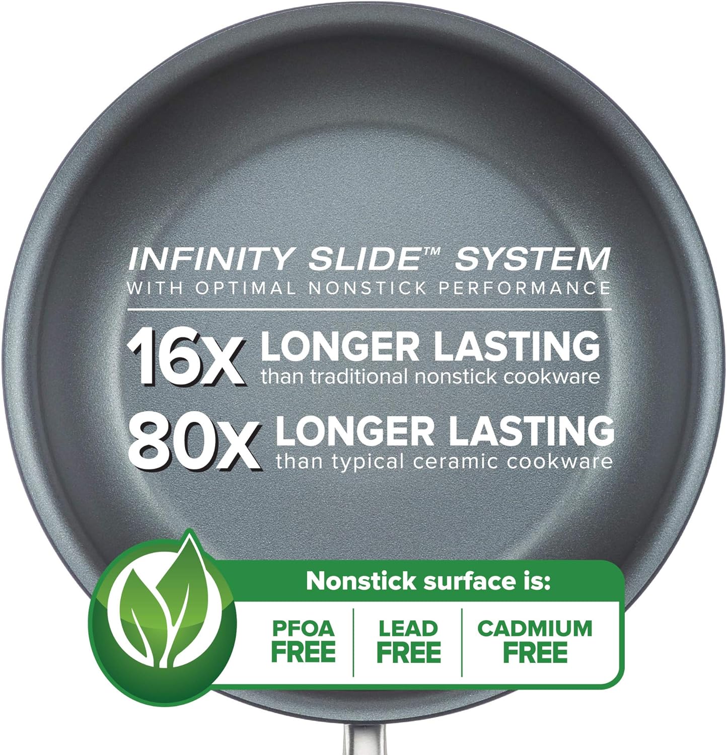 - OPTIMAL NONSTICK PERFORMANCE: Sapphire-reinforced Infinity Slide(tm) nonstick is PFOA-free and lasts 16X longer than traditional nonstick and 80X longer than typical ceramic cookware