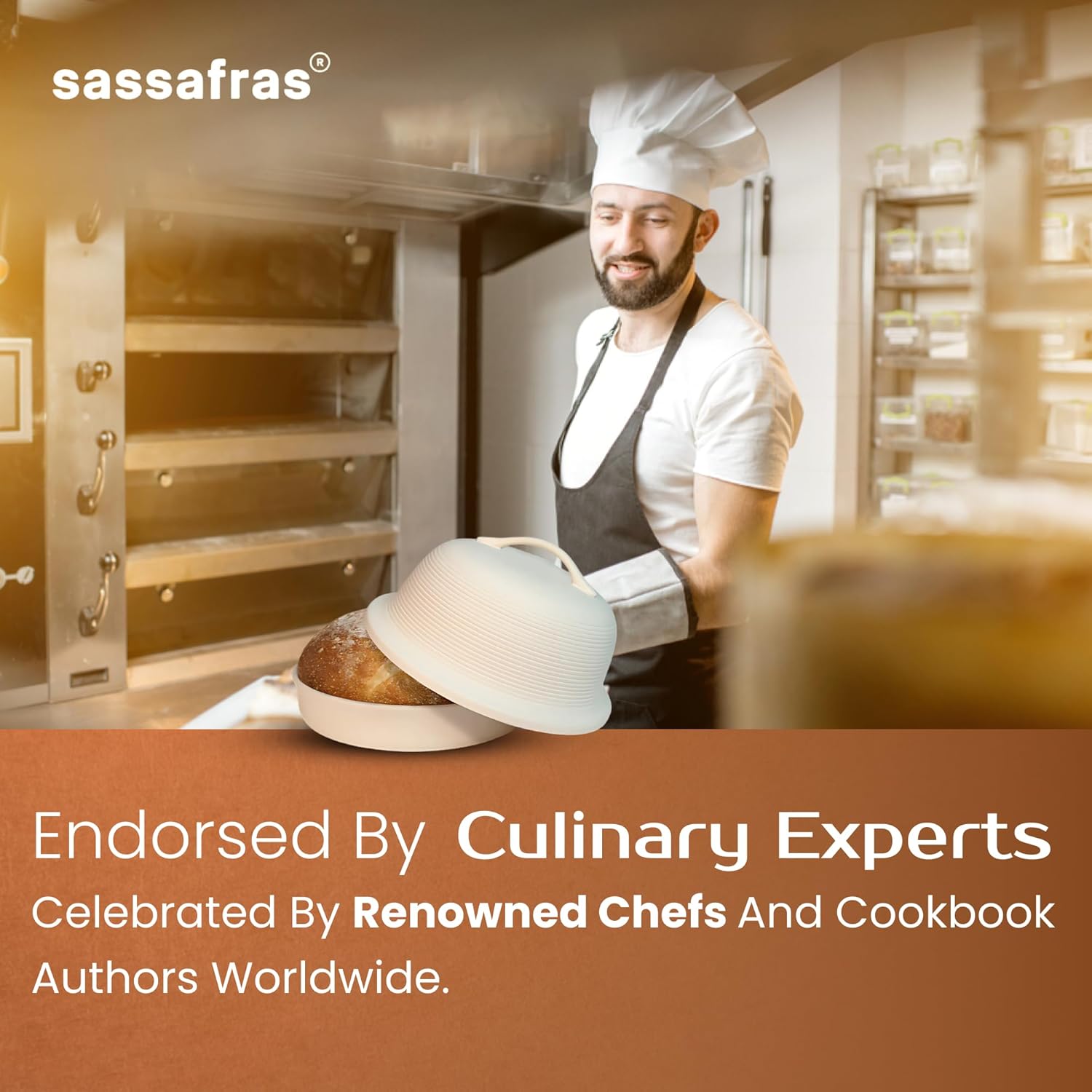 Sassafras Superstone Stoneware La Cloche Bread Baker, Unglazed, Baking Stone for Bread, Capacity 5QT 12”D x7”H with handle, Withstands Temperature 500-2100 Fahrenheit