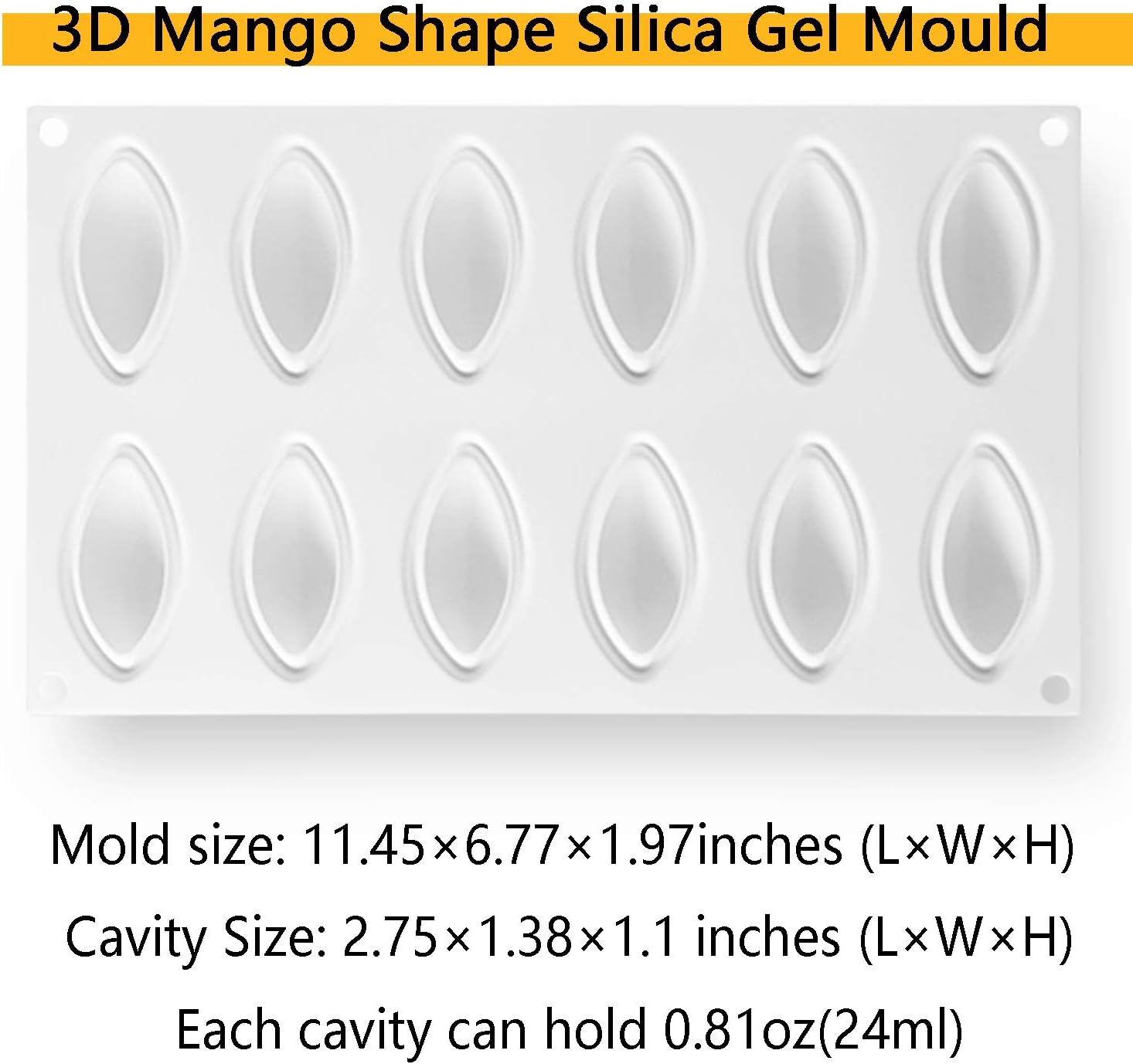 - ENJOY COOKING - The silicone chocolate mold overall size is 11.45x6.77x1.97inches (LxWxH), Cavity Size: 2.75x1.38x1.1 inches (LxWxH), Each cavity can hold 0.81oz(24ml). Using multi-cavity silicone cake candy chocolate molds make your cooking easier