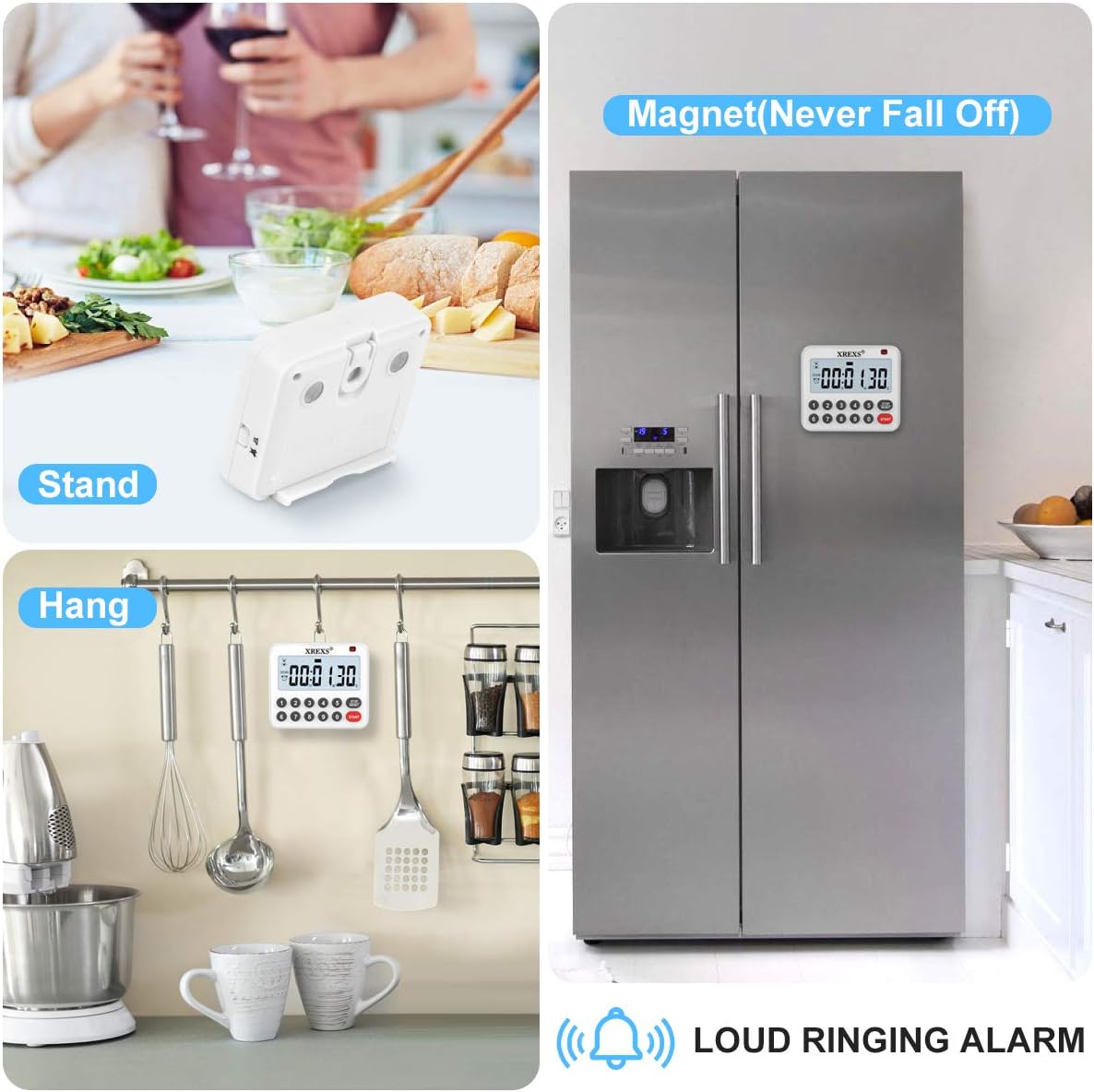XREXS Digital Kitchen Timer Magnetic Countdown Up Cooking Timer Loud Alarm and Mute Optional, Magnet and Stand, Large Display Classroom Timer for Teachers (2 Batteries Included) Upgraded Version