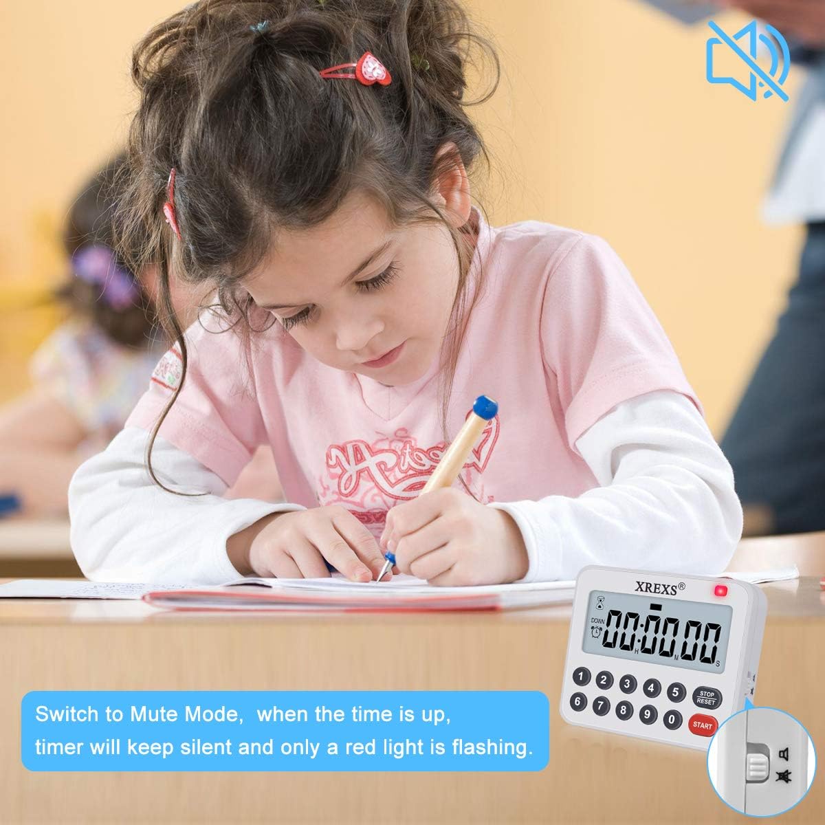 - LOUD RINGING ALARM & MUTE MODE ----- You can easily hear this kitchen timer’s alarm in another room with loud beeping sound . No worry about overcook or undercook . If you don't like the alarm, you could switch the alarm to mute and there will be a red light flashing.